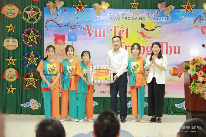 Đại diện Sở Giáo dục và Đào tạo tỉnh trao quà trung thu cho các em tại Cơ sở Bảo trợ Xã hội Tổng hợp tỉnh