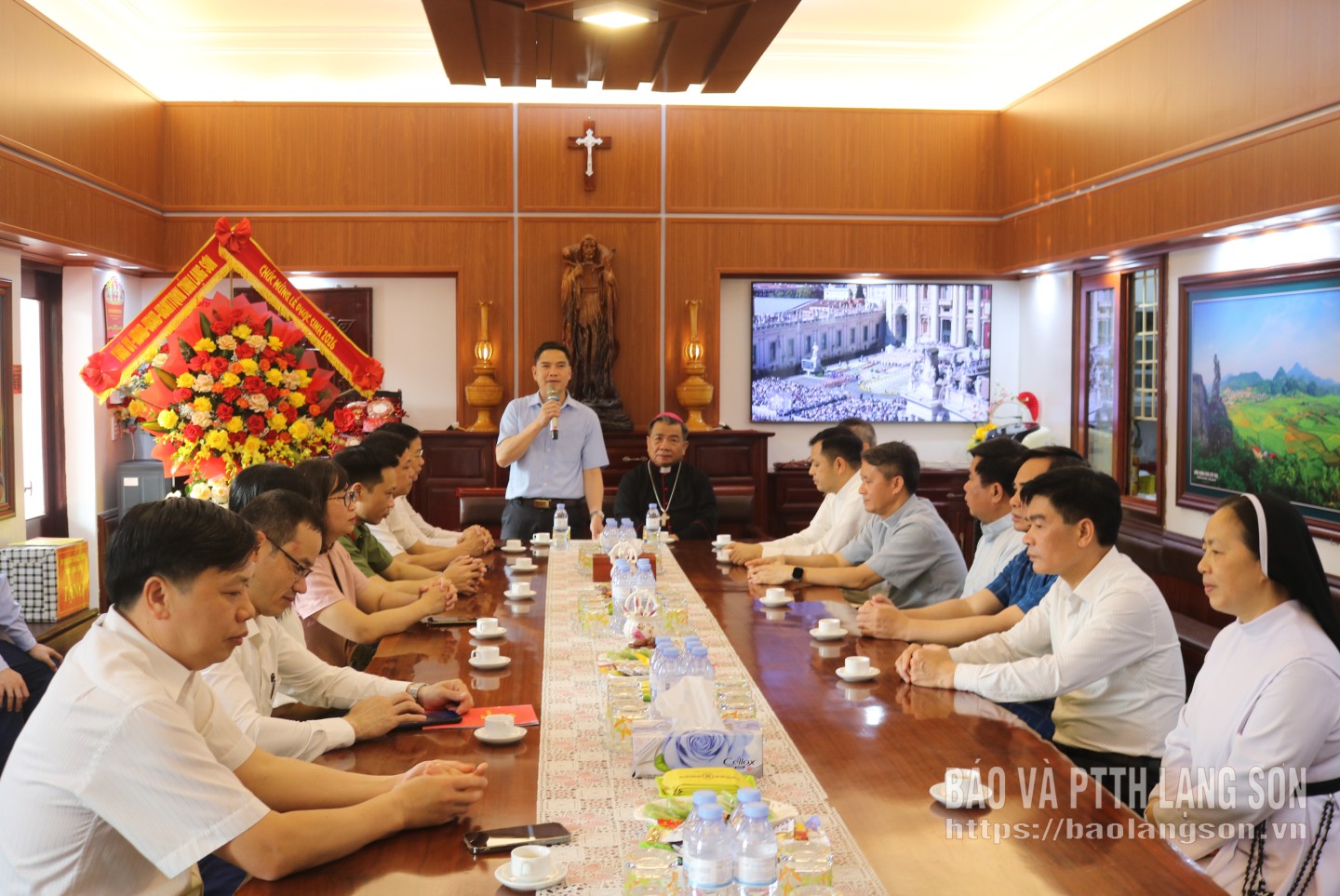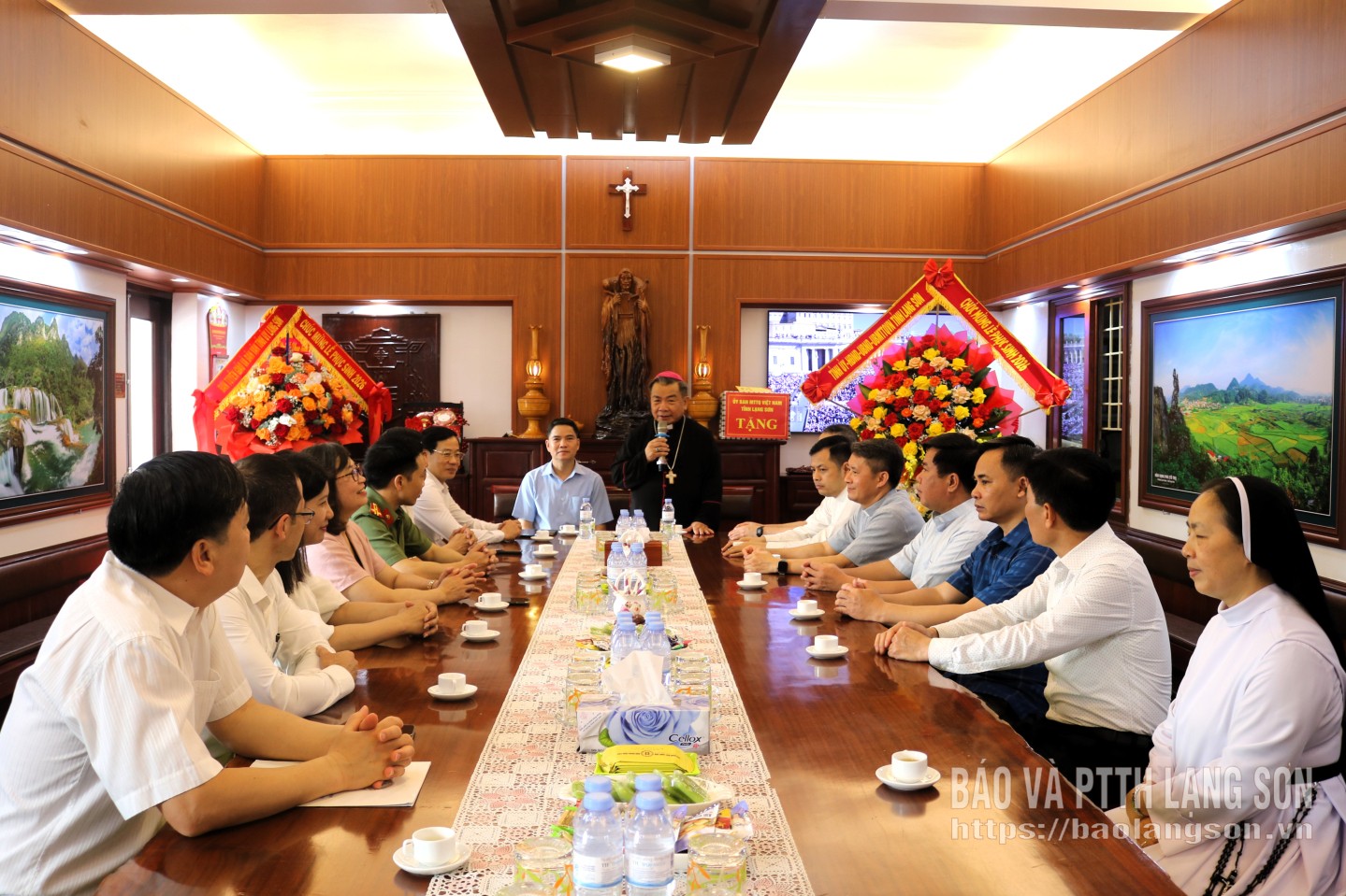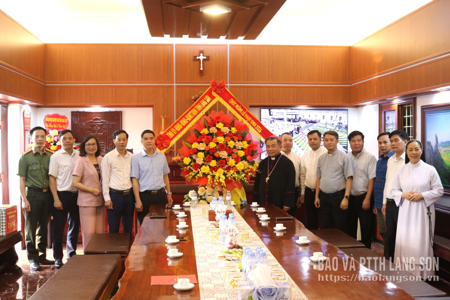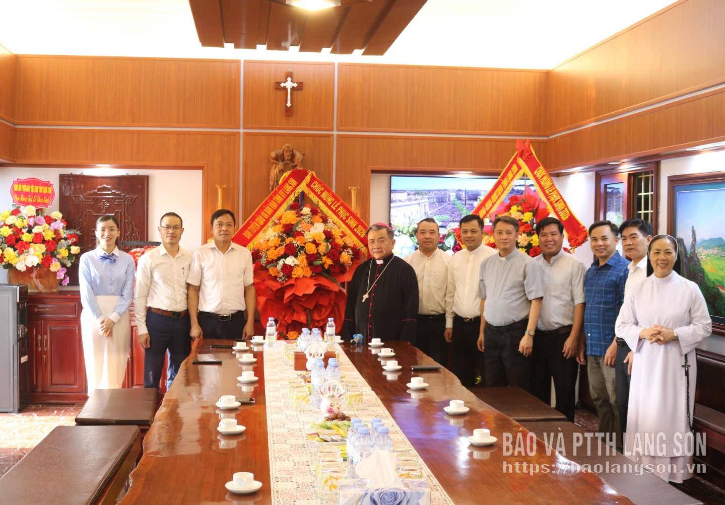 Đoàn công tác của tỉnh tặng hoa chúc mừng Tòa Giám mục Giáo phận Lạng Sơn - Cao Bằng nhân dịp lễ Phục sinh năm 2026