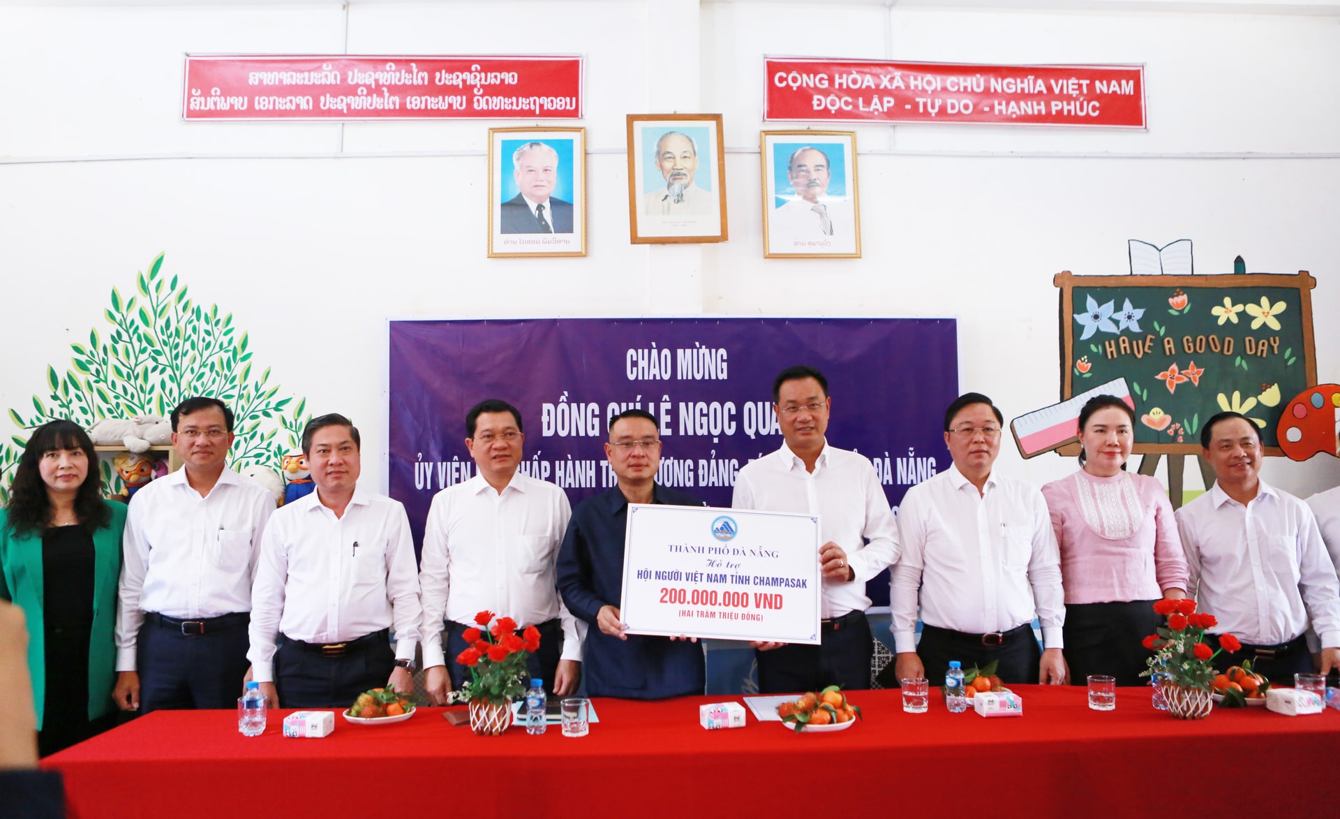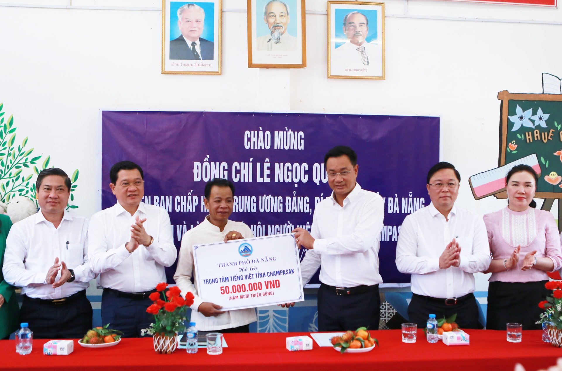 Đối với Trung tâm tiếng Việt tại tỉnh Champasak, Bí thư Thành ủy Lê Ngọc Quang đánh giá cao nỗ lực của đội ngũ giáo viên trong việc duy trì, lan tỏa tiếng Việt, góp phần gìn giữ văn hóa, bản sắc dân tộc trong cộng đồng người Việt tại Lào.