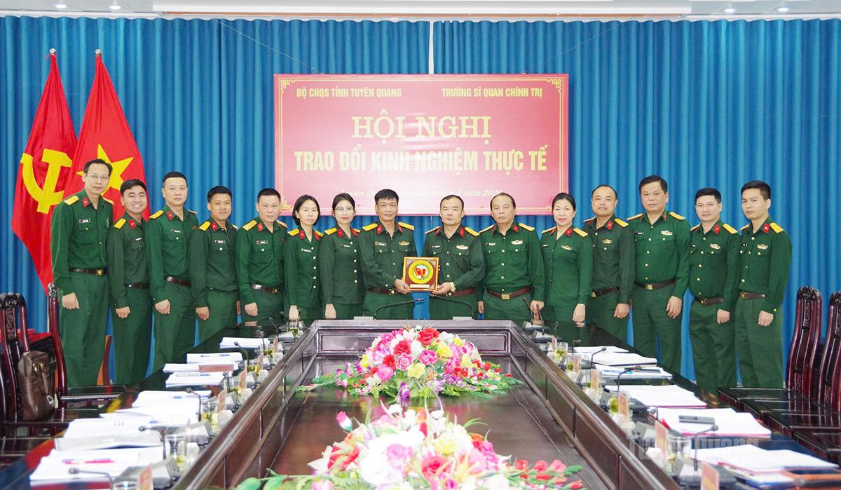 Đoàn công tác của Học viện Chính trị Bộ Quốc phòng tặng quà lưu niệm Bộ Chỉ huy Quân sự tỉnh.