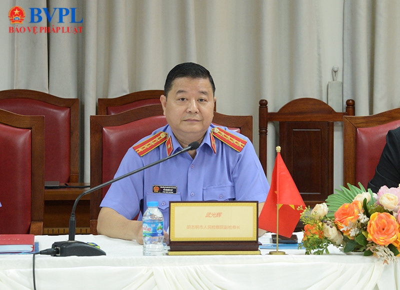 Buổi làm việc diễn ra trong không khí hữu nghị, trang trọng và thấm đượm tinh thần hợp tác giữa ngành Kiểm sát hai nước. Phát biểu chào mừng, đồng chí Võ Quang Huy bày tỏ vinh dự được đón tiếp Đoàn đại biểu đến thăm và làm việc tại VKSND TP Hồ Chí Minh, nhất là trong thời điểm hai nước kỷ niệm 75 năm thiết lập quan hệ ngoại giao và được lãnh đạo cấp cao hai Đảng lựa chọn là “Năm giao lưu nhân văn Việt - Trung”.