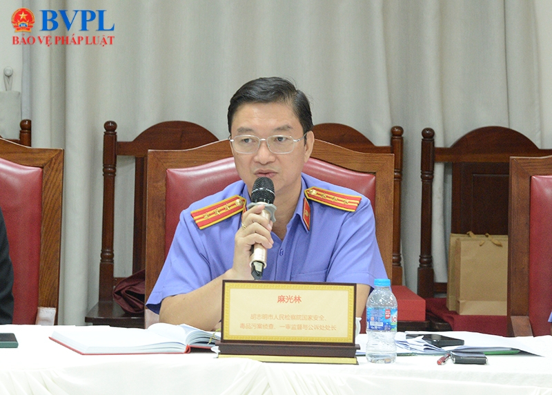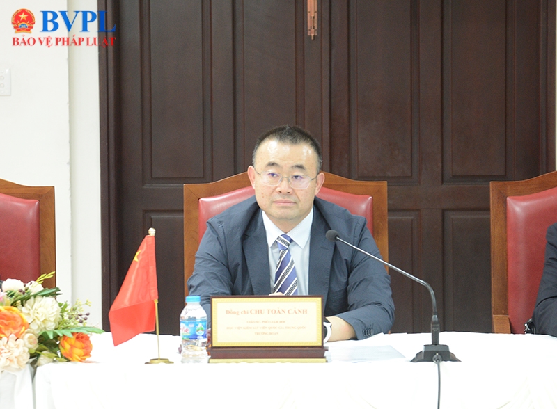 Đồng chí Chu Toàn Cảnh - Giáo sư, Phó Giám đốc Học viện Kiểm sát viên quốc gia Trung Quốc phát biểu tại buổi làm việc.