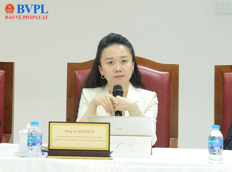 Đồng chí Hàn Bân - Tổng biên tập Tạp chí “Kiểm sát viên Trung Quốc” phát biểu trao đổi ý kiến.