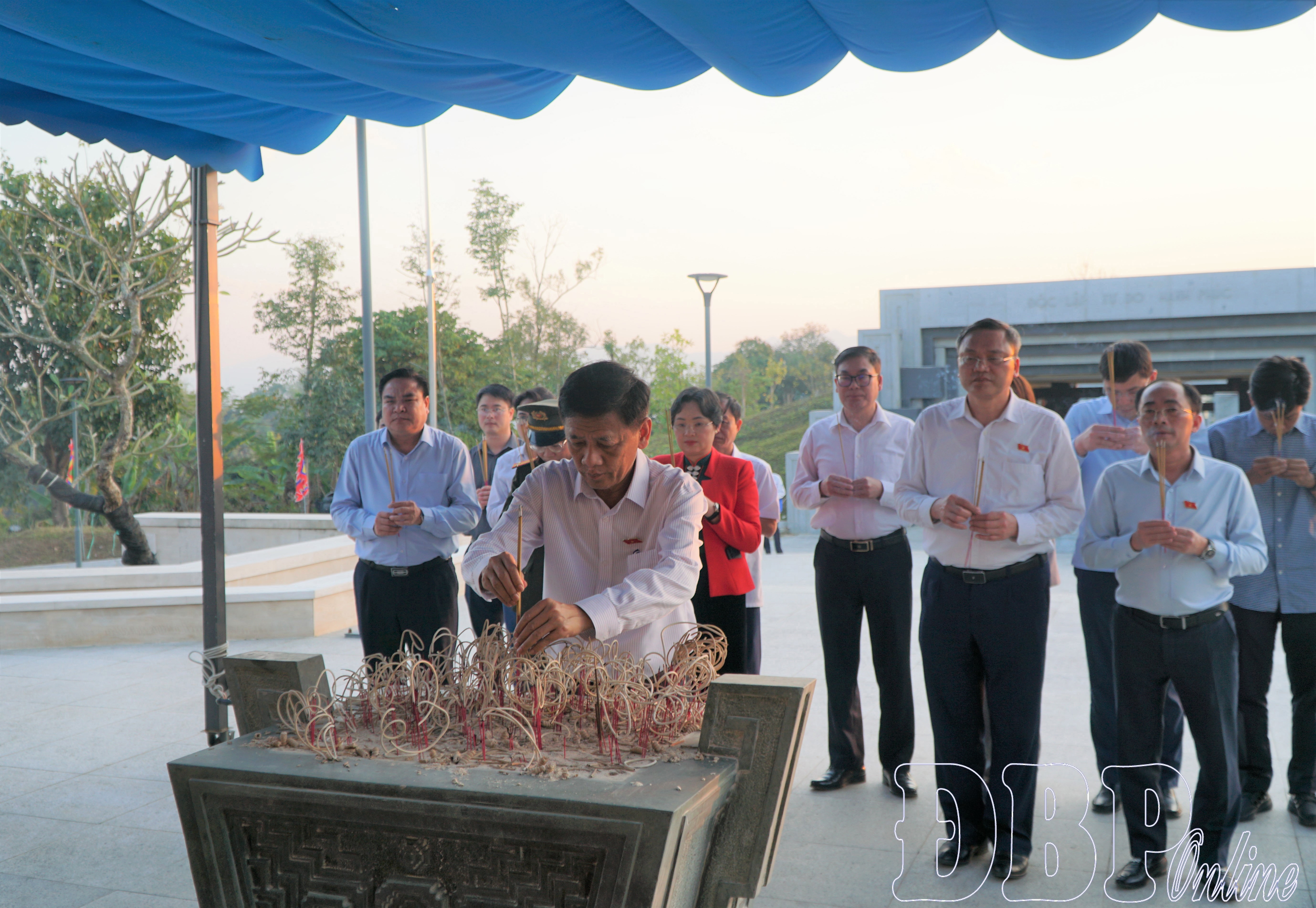 Trong không khí trang nghiêm, Đoàn công tác đã trân trọng đặt vòng hoa, dâng hương, thành kính bày tỏ lòng biết ơn, tưởng nhớ Đại tướng Võ Nguyên Giáp cùng cán bộ, chiến sĩ, thanh niên xung phong, dân công hỏa tuyến; quân và dân đã anh dũng chiến đấu, hy sinh làm nên chiến thắng Điện Biên Phủ. Đoàn công tác kính mong anh linh các anh hùng liệt sĩ phù hộ độ trì cho quốc thái dân an; đất nước Việt Nam trường tồn, giàu mạnh; nhân dân Việt Nam luôn được bình an, hạnh phúc.