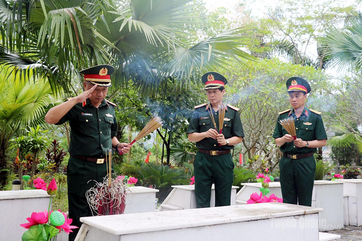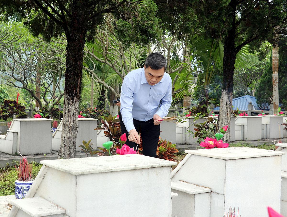 Trước anh linh các Anh hùng liệt sĩ, đoàn công tác thành kính dâng hoa, dâng hương bày tỏ lòng tôn kính trước sự hy sinh cao cả của các anh vì nền độc lập, tự do của Tổ quốc; nguyện cầu cho hương linh các anh được siêu sinh, tịnh độ, yên giấc ngàn thu cõi vĩ hằng; hồn thiêng các anh tiếp tục phù hộ, độ trì cho dân tộc, cho non sông Việt Nam phát triển cường thịnh.