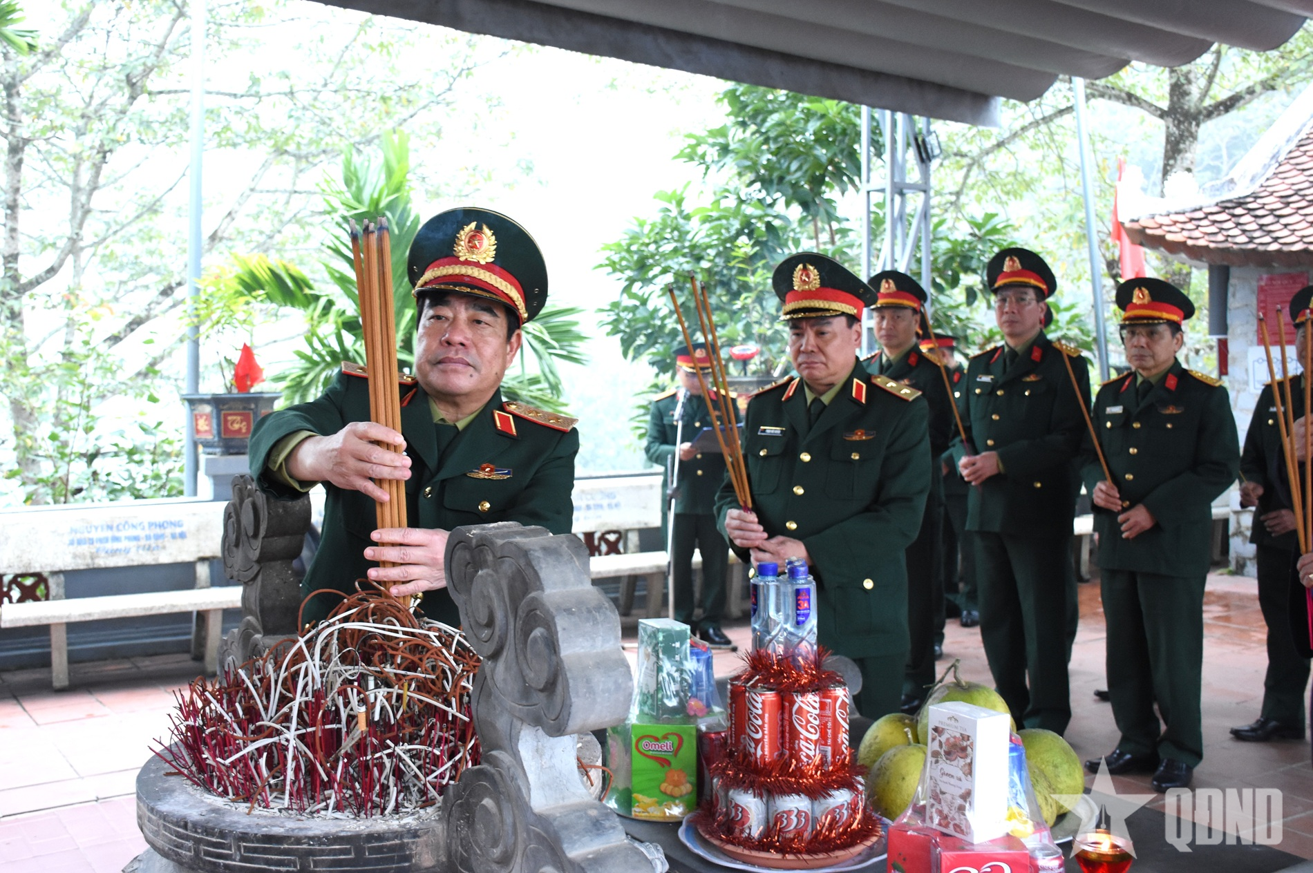 Trung tướng Nguyễn Bá Lực và đoàn công tác dâng hương viếng các Anh hùng liệt sĩ tại Đền thờ các Anh hùng liệt sĩ Mặt trận Vị Xuyên tại Điểm cao 468.