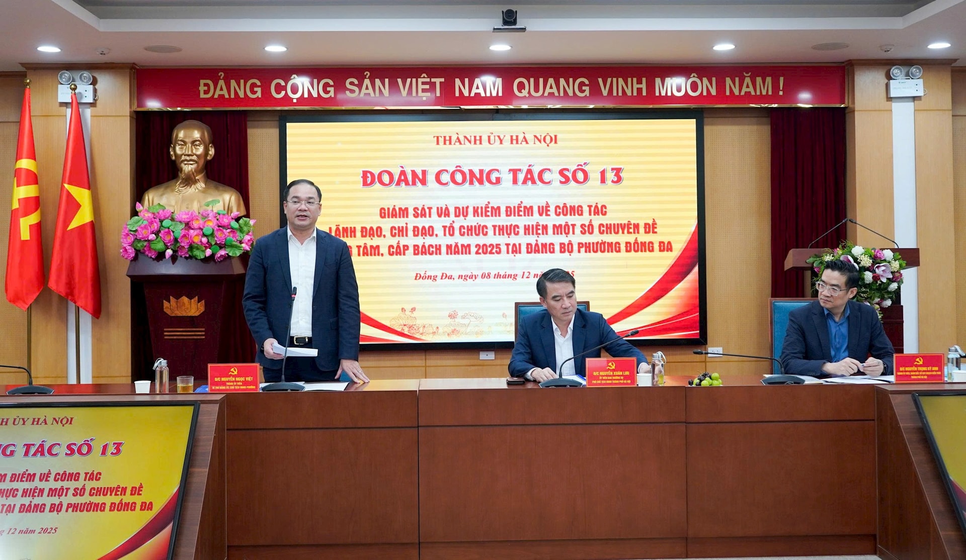 * Sáng cùng ngày, Ủy viên Ban Thường vụ Thành ủy, Phó Chủ tịch UBND thành phố Hà Nội Nguyễn Xuân Lưu đã giám sát và dự kiểm điểm về công tác lãnh đạo, chỉ đạo, tổ chức thực hiện một số chuyên đề trọng tâm, cấp bách cuối năm 2025 tại Đảng bộ phường Văn Miếu - Quốc Tử Giám.
