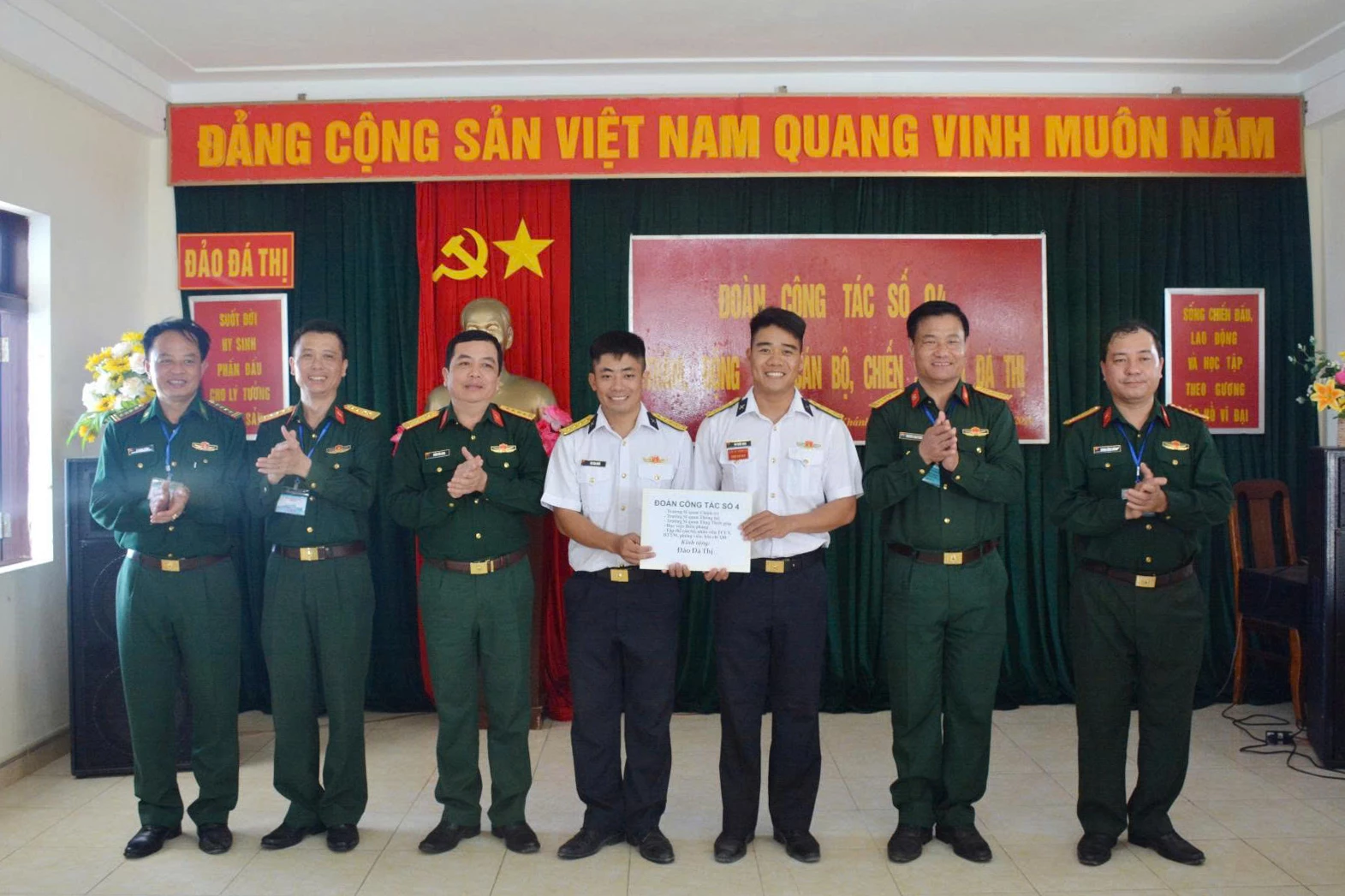 Đại diện đoàn công tác đã thăm hỏi, động viên và trao tặng nhiều phần quà ý nghĩa thiết thực đến cán bộ, chiến sĩ và Nhân dân các đảo. Chỉ huy đoàn ghi nhận, đánh giá cao tinh thần khắc phục khó khăn, gian khổ, ý chí quyết tâm sẵn sàng chiến đấu, bảo vệ vững chắc chủ quyền biển, đảo của các lực lượng; bày tỏ sự tin tưởng cán bộ, chiến sĩ và người dân trên các đảo, nhà giàn tiếp tục phát huy truyền thống vẻ vang của Quân đội nhân dân Việt Nam và Quân chủng Hải quân anh hùng; nêu cao tinh thần cảnh giác cách mạng, tích cực xây dựng đơn vị vững mạnh toàn diện “mẫu mực, tiêu biểu”, thắm tình đoàn kết quân dân, là điểm tựa vững chắc để ngư dân vươn khơi bám biển.
