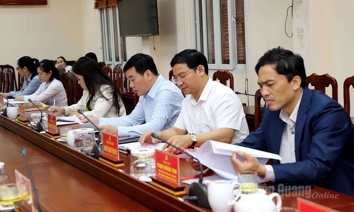 Trưởng Ban Tuyên giáo và Dân vận Tỉnh ủy Trần Mạnh Lợi thảo luận tại buổi làm việc.