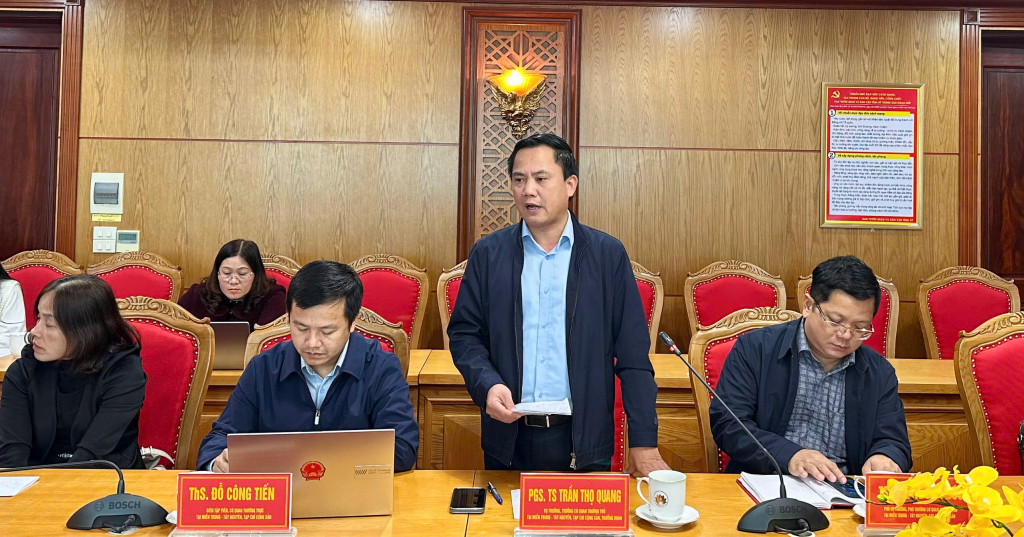 PGS,TS Trần Thọ Quang, Vụ trưởng, Trưởng Cơ quan Thường trực Tạp chí Cộng sản tại miền Trung - Tây Nguyên phát biểu tại buổi làm việc.