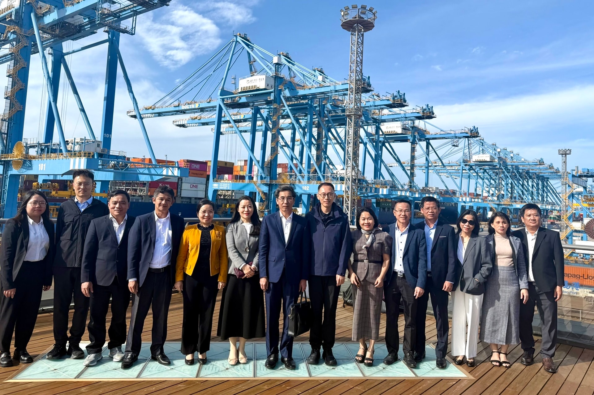 Trong khuôn khổ buổi làm việc, đoàn tham quan và khảo sát thực tế tại Khu thương mại tự do và cảng Thanh Đảo. Đây là một trong những cảng container lớn và hiện đại nhất thế giới, có vị trí chiến lược trên tuyến hàng hải Đông Bắc Á, kết nối với hơn 700 cảng tại hơn 180 quốc gia và vùng lãnh thổ.