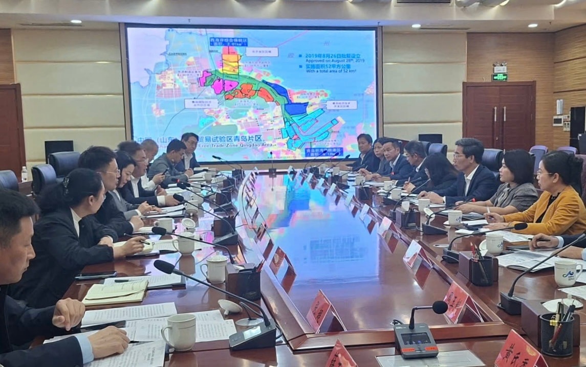 Ông Zhang Yunqing, Phó Giám đốc hành chính cùng các lãnh đạo Ban Quản lý Khu thương mại tự do - Phân khu Thanh Đảo hoan nghênh đoàn công tác đến thăm và làm việc; đồng thời chia sẻ thông tin về mô hình tổ chức, cơ chế quản lý và vận hành khu thương mại tự do, cách thức phối hợp giữa các cơ quan và bên liên quan.