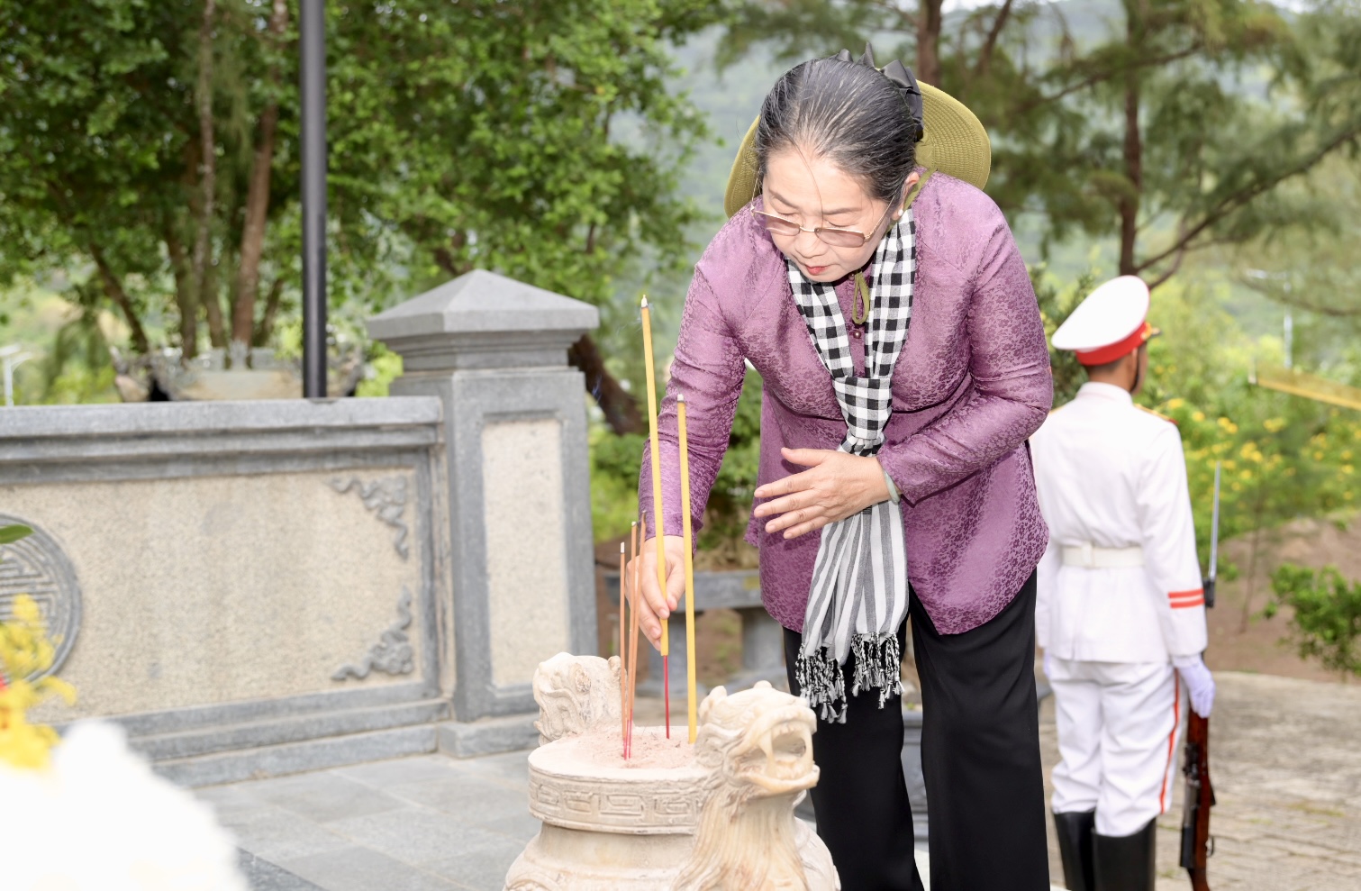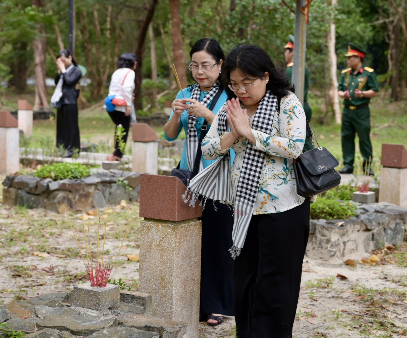 Đoàn đại biểu kính cẩn nghiêng mình tưởng nhớ, nguyện tiếp bước truyền thống anh hùng, bất khuất, nhân hậu, thủy chung, cùng toàn Đảng, toàn quân, toàn dân bảo vệ vững chắc chủ quyền biển, đảo của Tổ quốc, xứng đáng với công lao to lớn của đồng bào, đồng chí cả nước đã chiến đấu và anh dũng hy sinh trên mảnh đất Côn Đảo thiêng liêng.