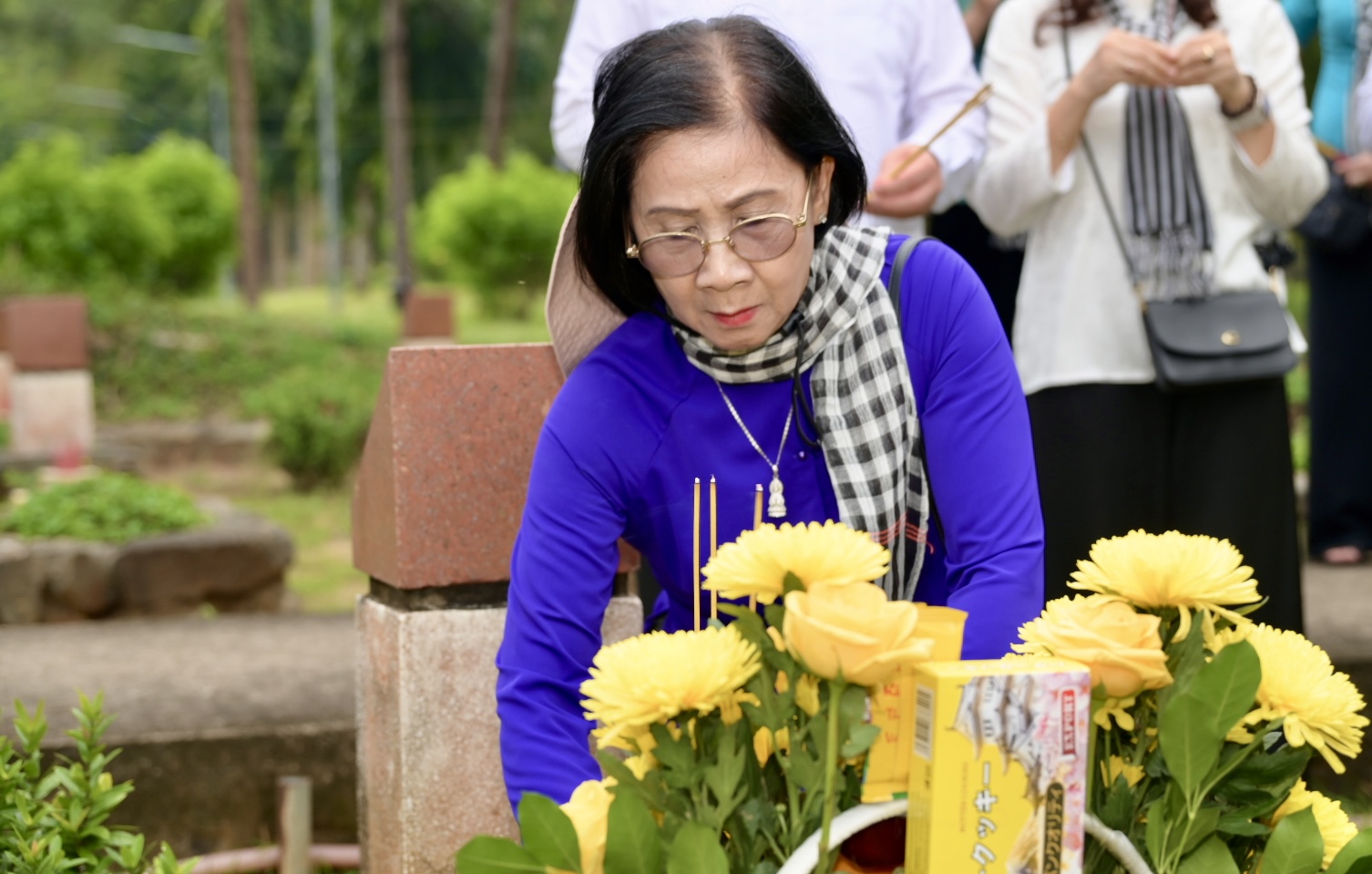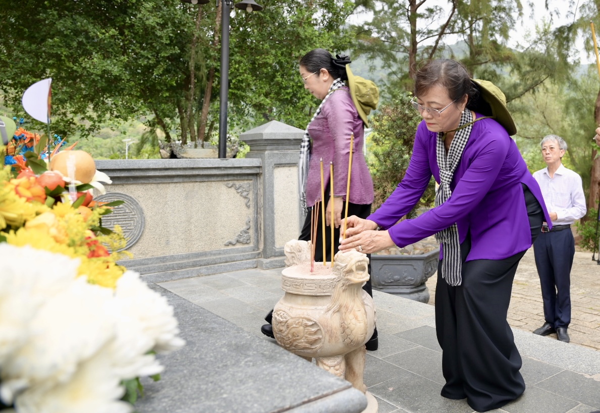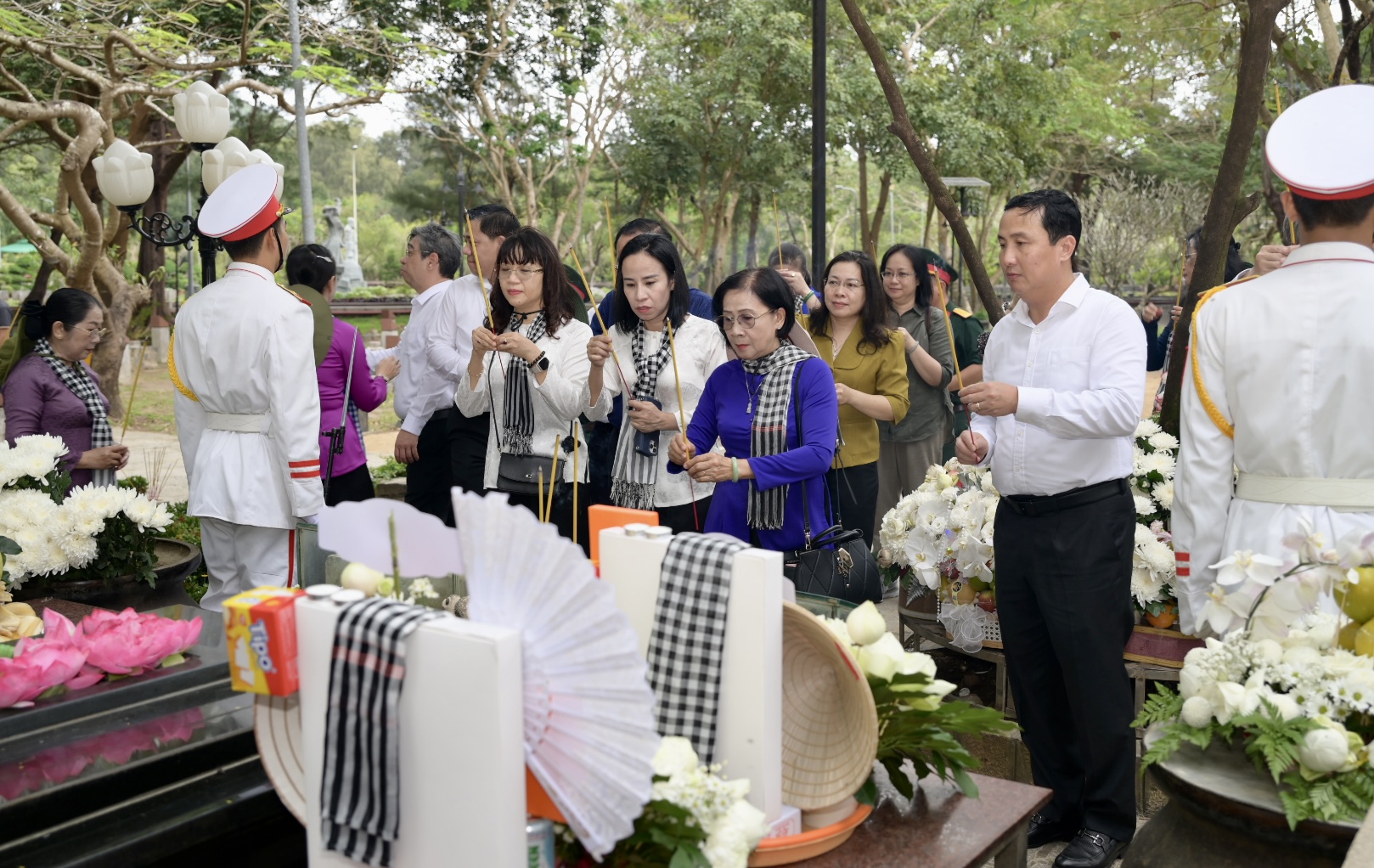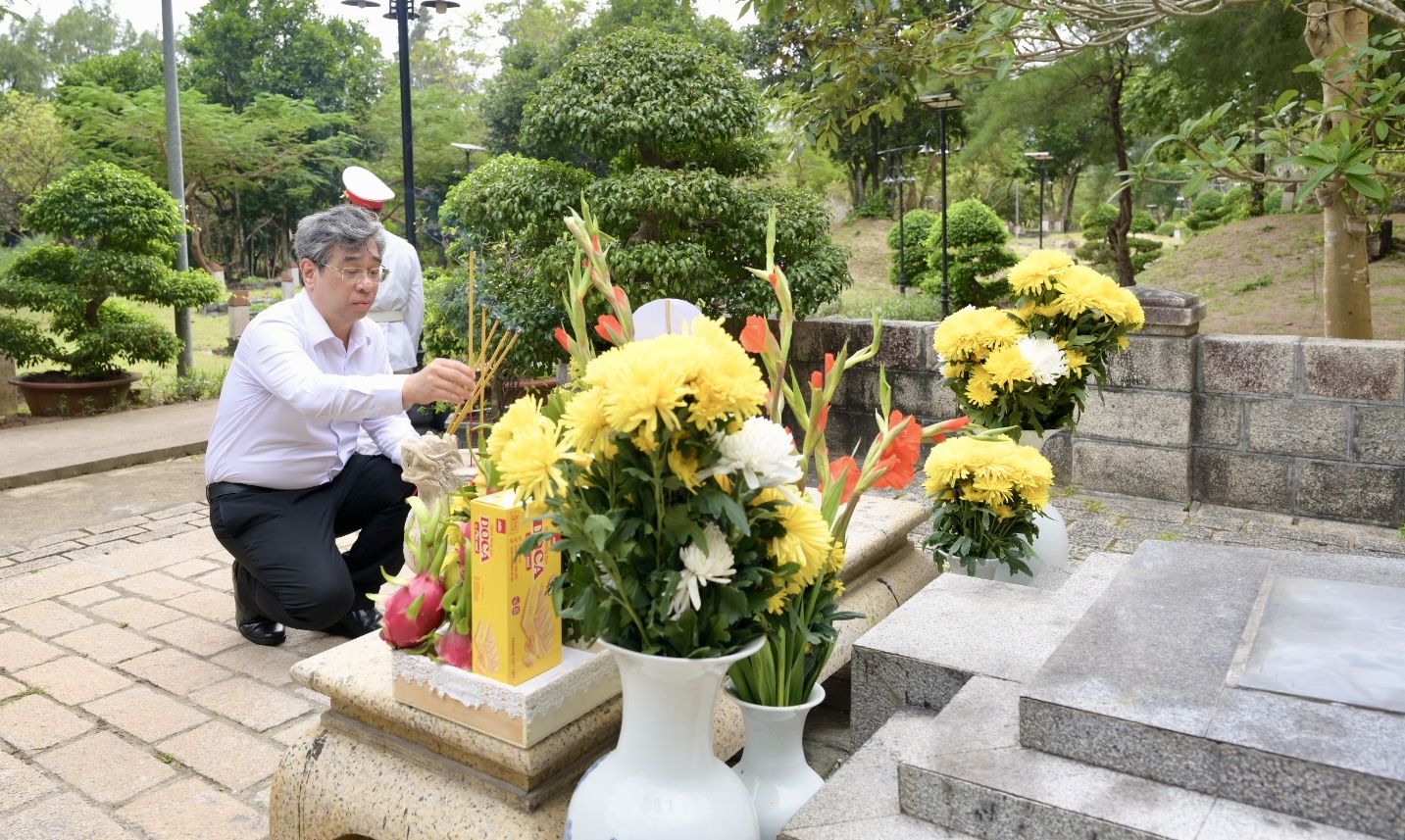 Sau lễ dâng hương, đoàn đại biểu đã thắp hương tại mộ Tổng Bí thư Lê Hồng Phong, Anh hùng Lực lượng vũ trang nhân dân Vũ Văn Hiếu, Nhà yêu nước Nguyễn An Ninh và các mộ liệt sĩ.