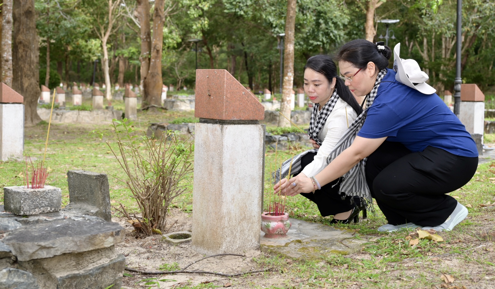 Tại Nghĩa trang Hàng Dương, đoàn đại biểu đã dành phút mặc niệm, dâng những vòng hoa tươi thắm, thành kính thắp nén hương thơm tưởng nhớ các bậc tiền nhân, các Anh hùng liệt sĩ và đồng bào yêu nước vì sự nghiệp giải phóng dân tộc đã vĩnh viễn yên nghỉ trên mảnh đất Côn Đảo thiêng liêng.