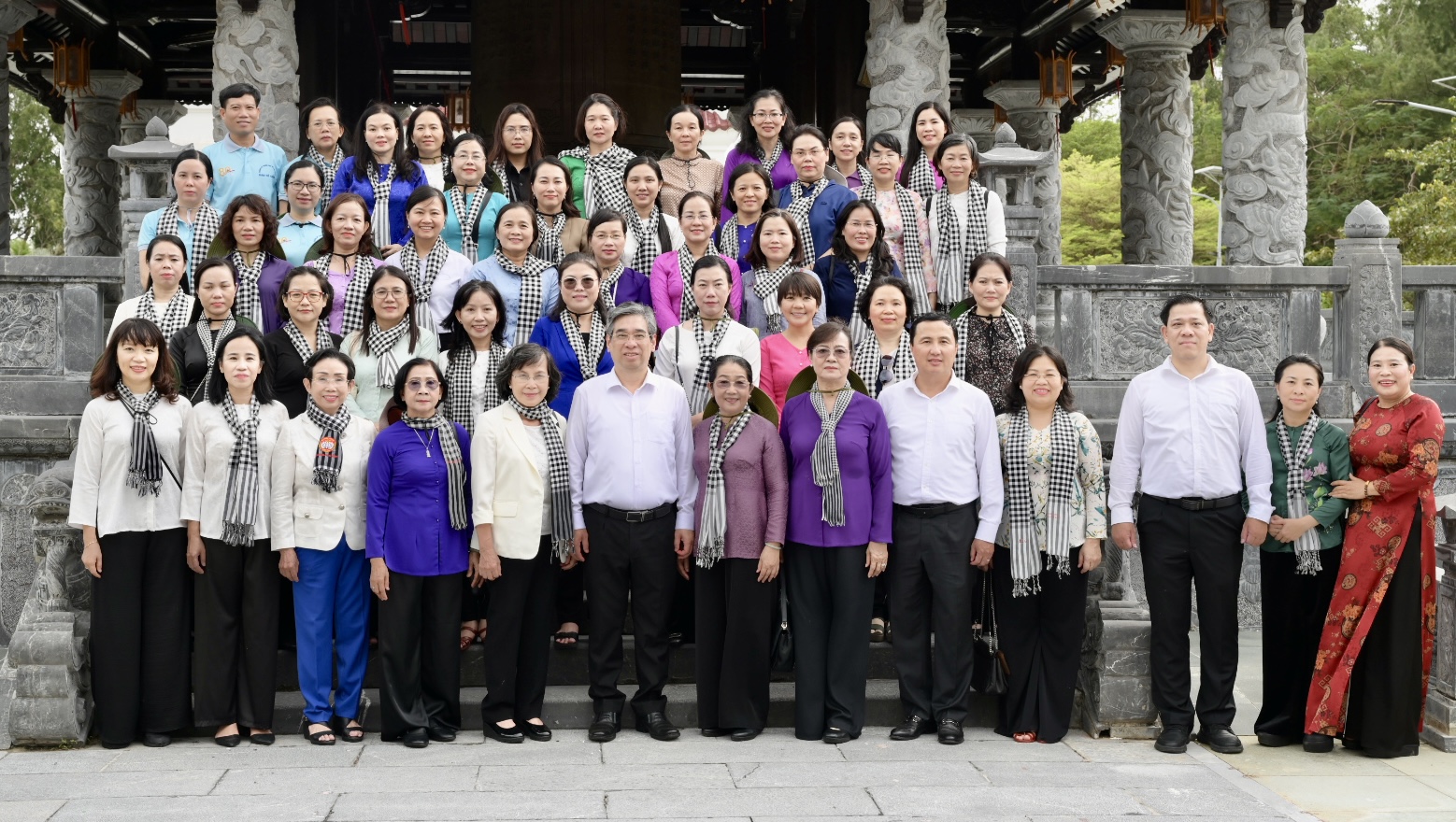 Đồng chí Nguyễn Phước Lộc, Phó Bí thư Thành ủy, Chủ tịch Ủy ban MTTQ Việt Nam TPHCM cùng lãnh đạo, nguyên lãnh đạo Thành phố và đội ngũ cán bộ nữ Thành phố. Ảnh: VĂN MINH
