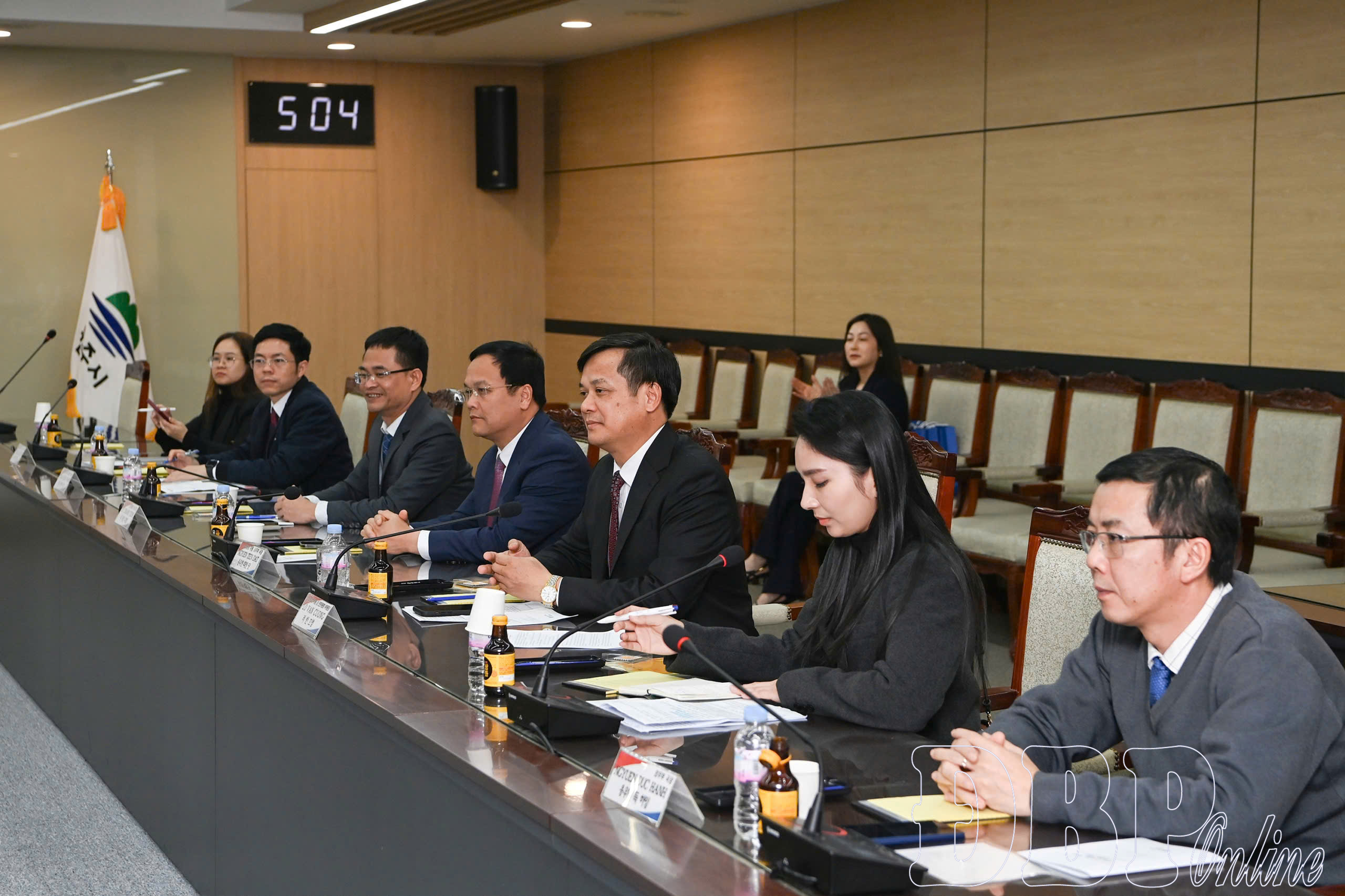 Đoàn công tác tỉnh Điện Biên làm việc với lãnh đạo Thành phố Wonju. (Ảnh CTV)