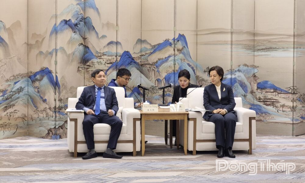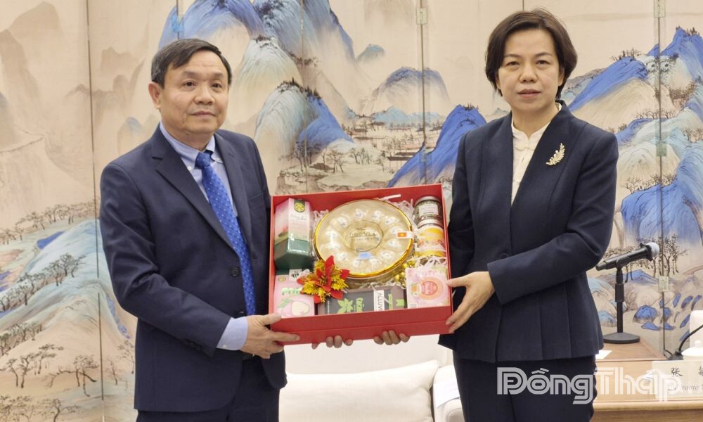 Đồng chí Phan Văn Thắng, Phó Bí thư Tỉnh ủy, Chủ tịch Ủy ban Mặt trận Tổ quốc Việt Nam tỉnh Đồng Tháp hội đàm cùng Bà Trương Mẫn, Ủy viên Thường vụ Tỉnh ủy, Phó Tỉnh trưởng tỉnh Hà Nam (Trung Quốc).