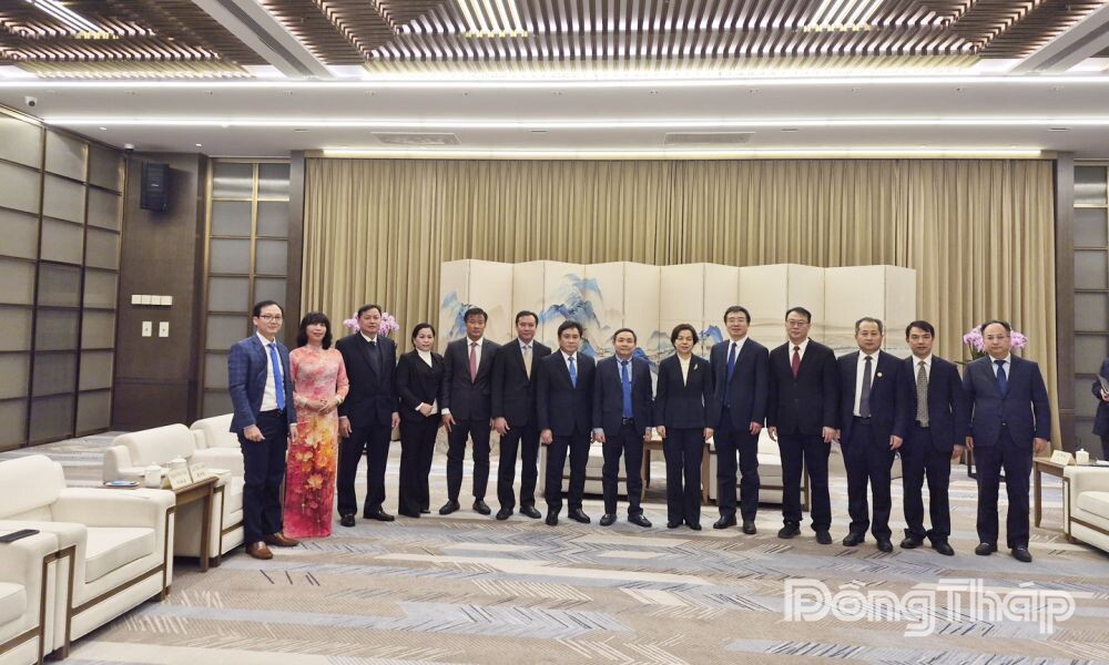 Đoàn công tác tỉnh Đồng Tháp chụp ảnh lưu niệm cùng với đoàn lãnh đạo tỉnh Hà Nam (Trung Quốc).