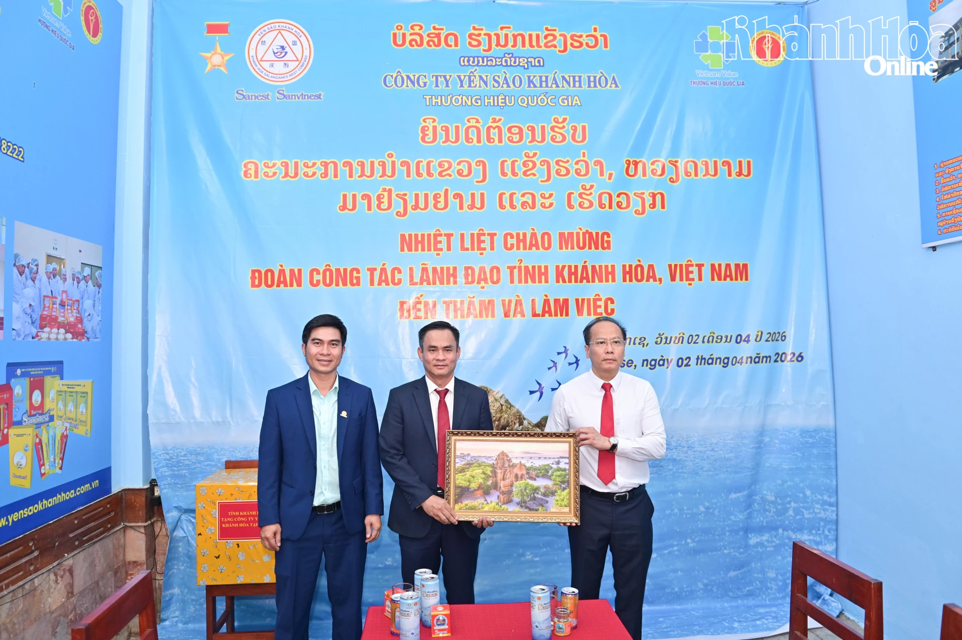 Ngày 2-4, đoàn công tác của tỉnh Khánh Hòa do đồng chí Nguyễn Khắc Hà - Phó Bí thư Tỉnh ủy, Chủ tịch Ủy ban MTTQ Việt Nam tỉnh làm Trưởng đoàn đến thăm nhà yến Công ty TNHH Nhà nước Một thành viên Yến sào Khánh Hòa (Công ty Yến sào Khánh Hòa) tại thành phố Pakse, tỉnh Champasak.