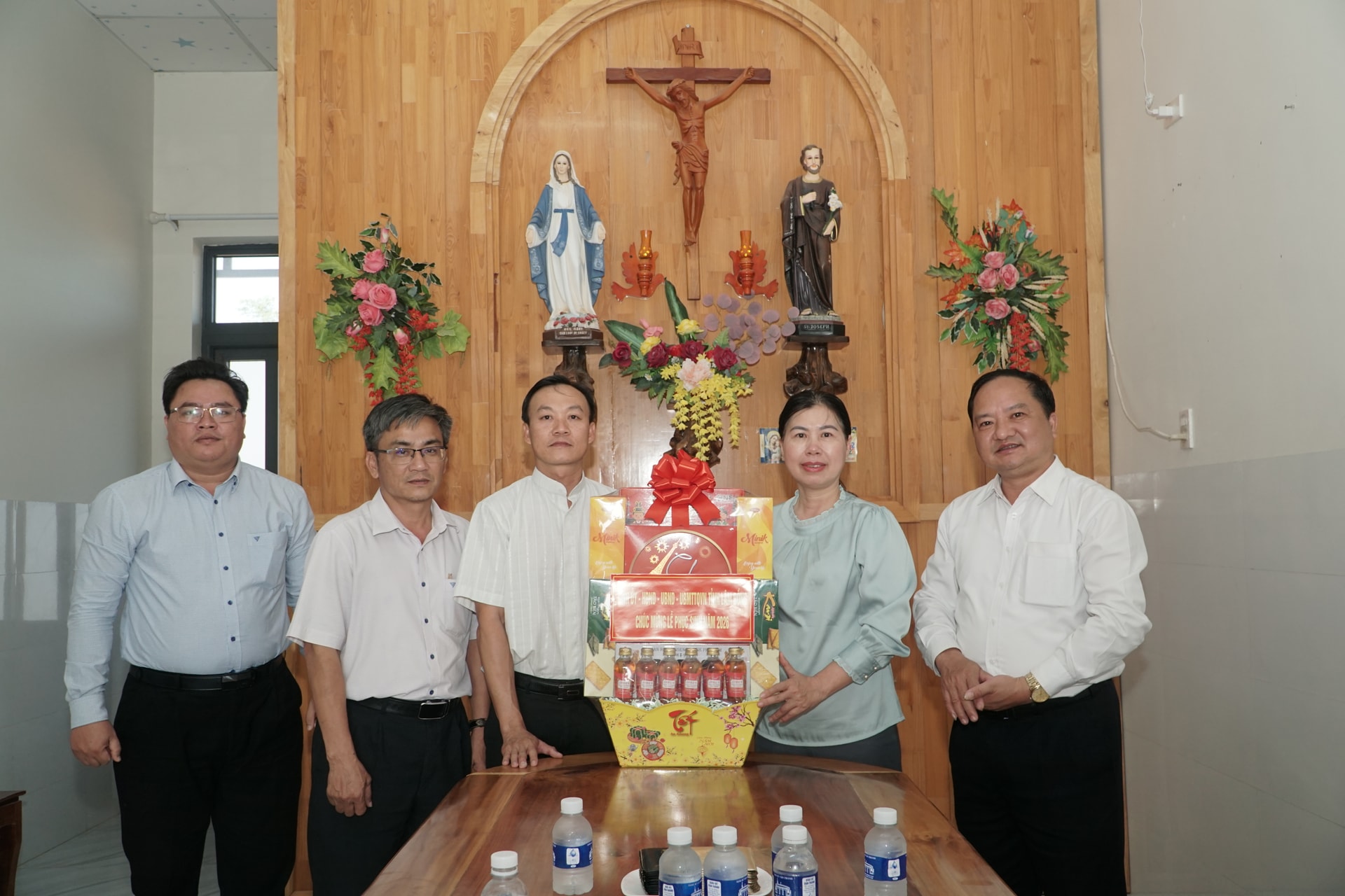 Đoàn công tác của tỉnh thăm hỏi đời sống sinh hoạt tôn giáo của bà con giáo dân khi đến thăm, chúc mừng Lễ Phục sinh tại Giáo xứ Sông Mao