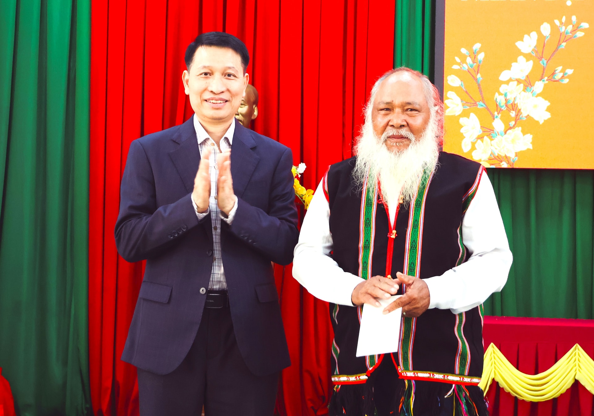Dịp này, đoàn công tác đã trao tặng quà cho 8 hộ gia đình chính sách, 2 người có uy tín tiêu biểu vùng đồng bào dân tộc thiểu số và 100 suất quà dành cho hộ nghèo, cận nghèo, mỗi suất trị giá 1 triệu đồng (gồm quà và tiền mặt).