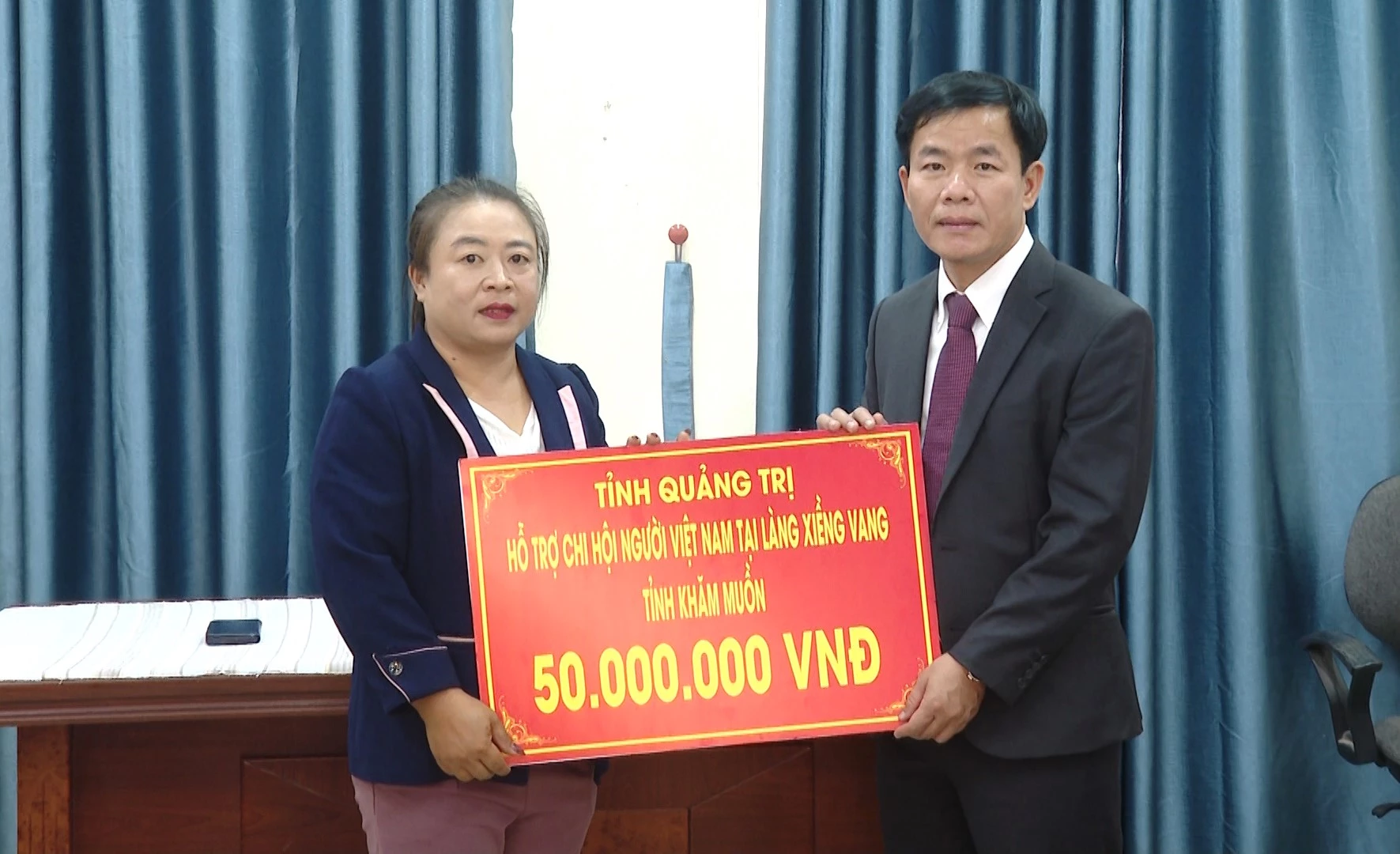 Dịp này, đồng chí Bí thư Tỉnh ủy Nguyễn Văn Phương đã trao hỗ trợ Hội người Việt tại tỉnh Khăm Muồn 50 triệu đồng; Chi hội người Việt tại làng Xiềng Vang 50 triệu đồng.