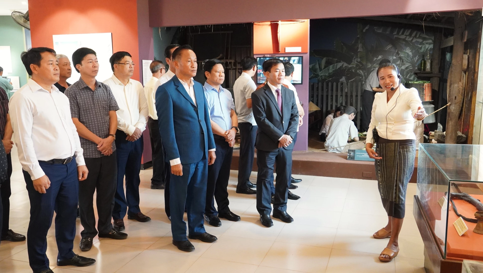 Đoàn công tác thăm Khu lưu niệm Chủ tịch Hồ Chí Minh tại bản Xiềng Vang - Ảnh: Q.V