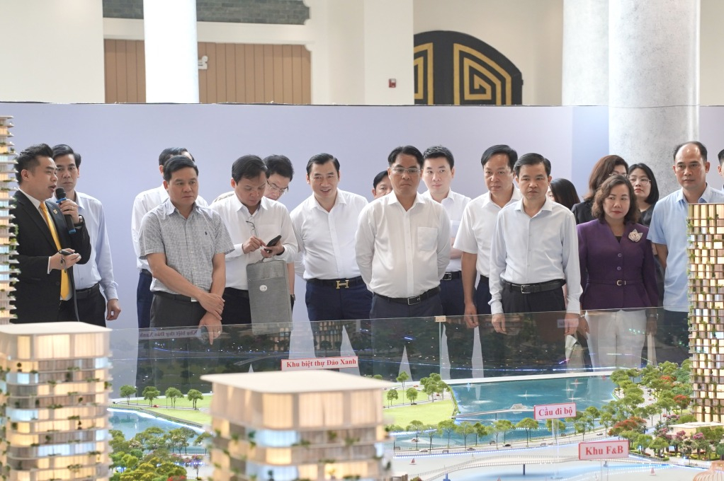 Tiếp đó, đoàn tham quan Khu đô thị mới Đồng Nò - khu đô thị nằm gần trung tâm thành phố, được định hướng phát triển theo mô hình đô thị sinh thái hiện đại, đồng bộ về hạ tầng kỹ thuật và xã hội. Khu vực này được quy hoạch tổng thể, chú trọng không gian xanh, tiện ích chất lượng cao, các công trình xây dựng theo tiêu chuẩn quốc tế, hướng tới hình thành khu đô thị kiểu mẫu, đáp ứng nhu cầu phát triển đô thị bền vững và nâng cao chất lượng sống của người dân.