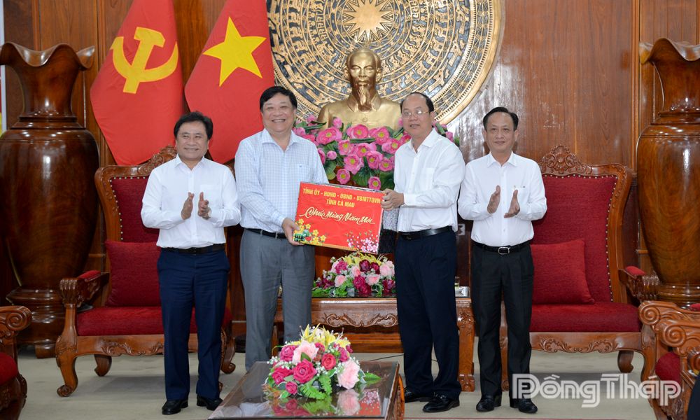Đồng chí Nguyễn Hồ Hải tặng quà, chúc tết Tỉnh ủy Đồng Tháp.