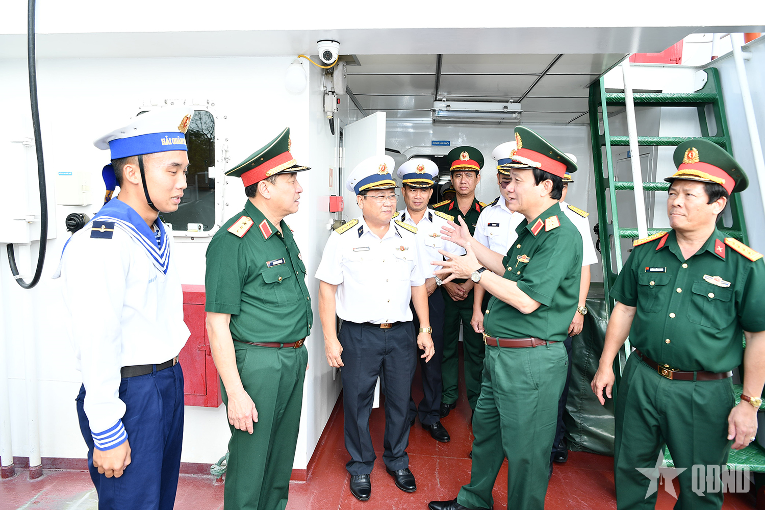 Đoàn công tác kiểm tra tình hình sinh hoạt của cán bộ, chiến sĩ trên tàu thuộc Lữ đoàn 962.