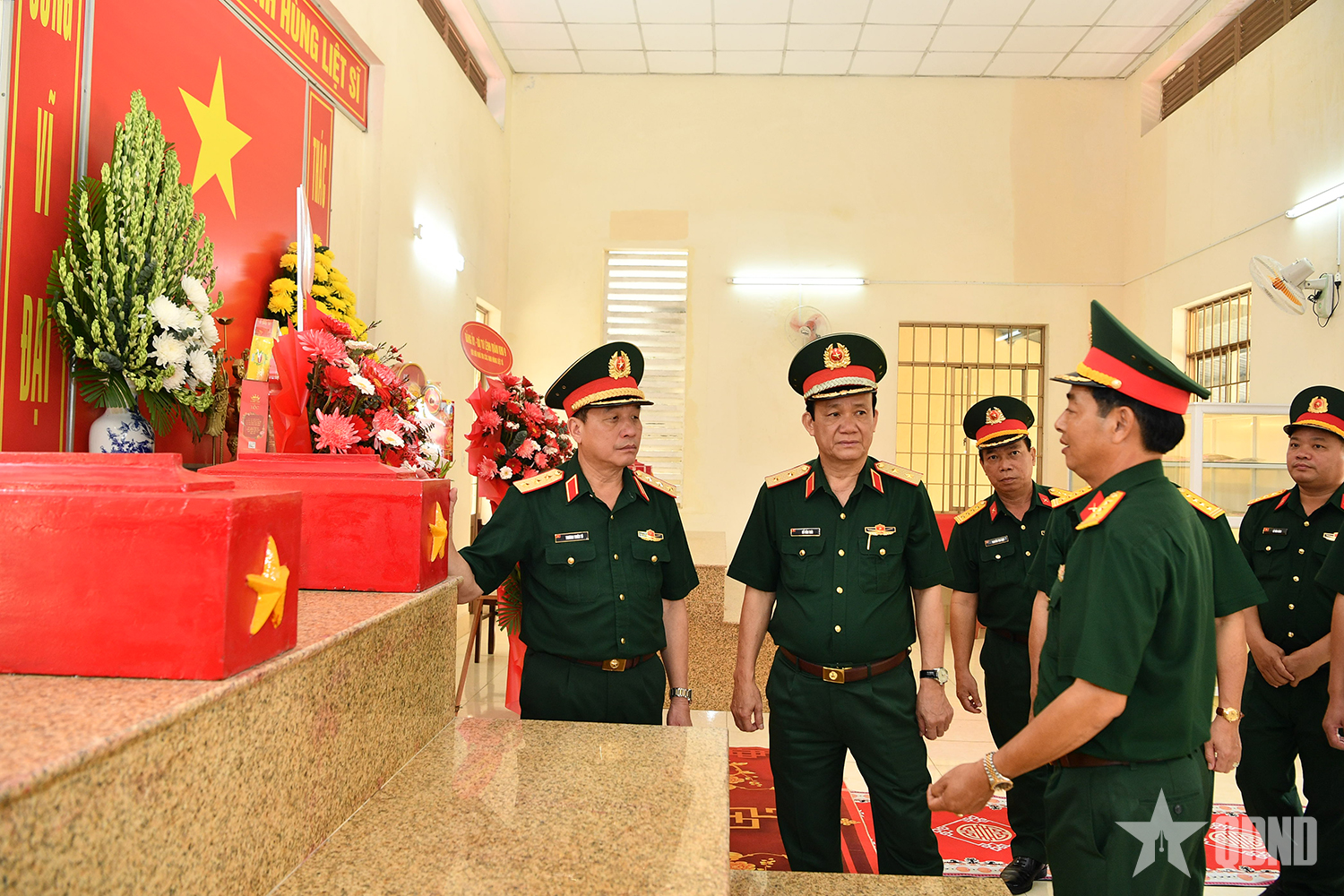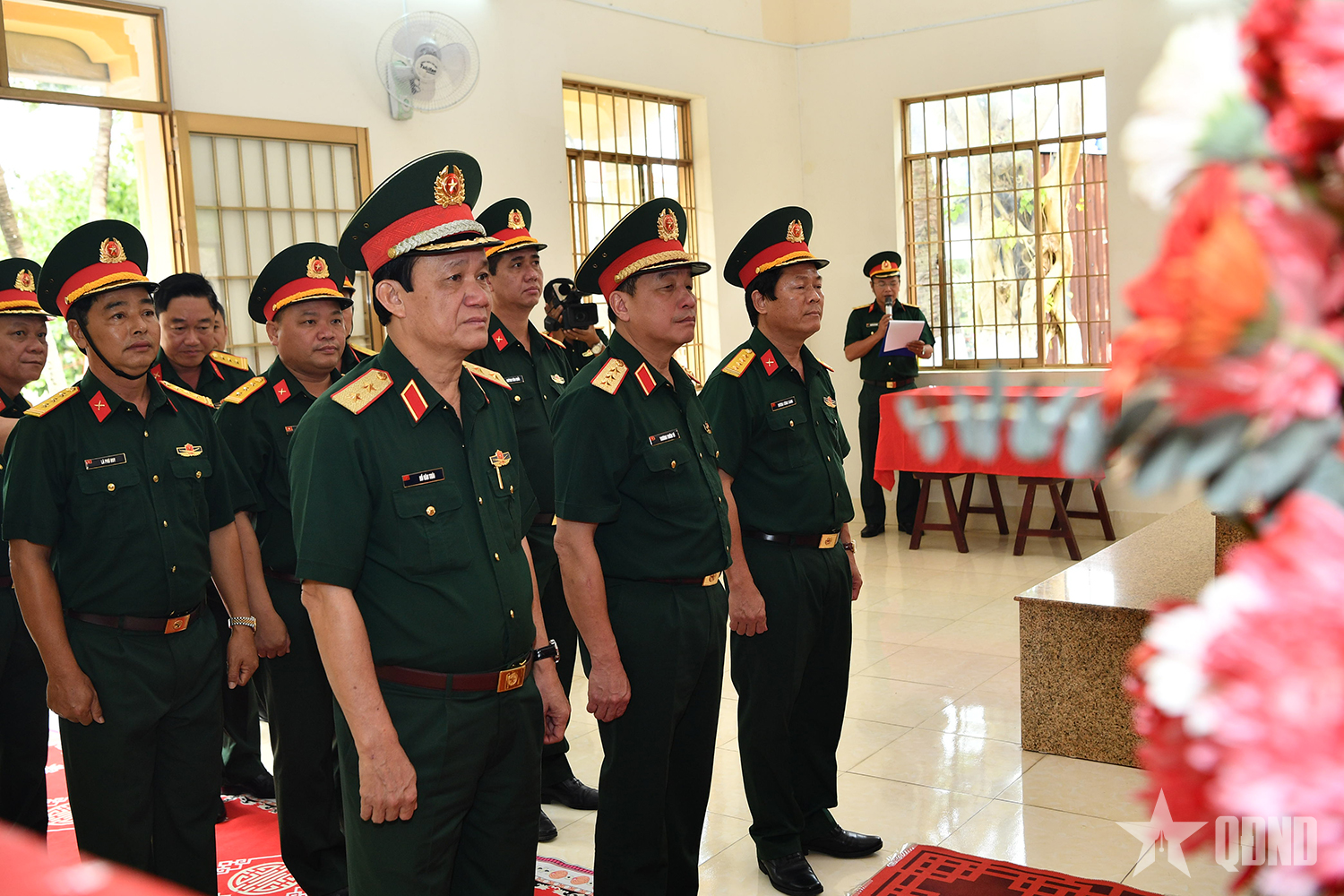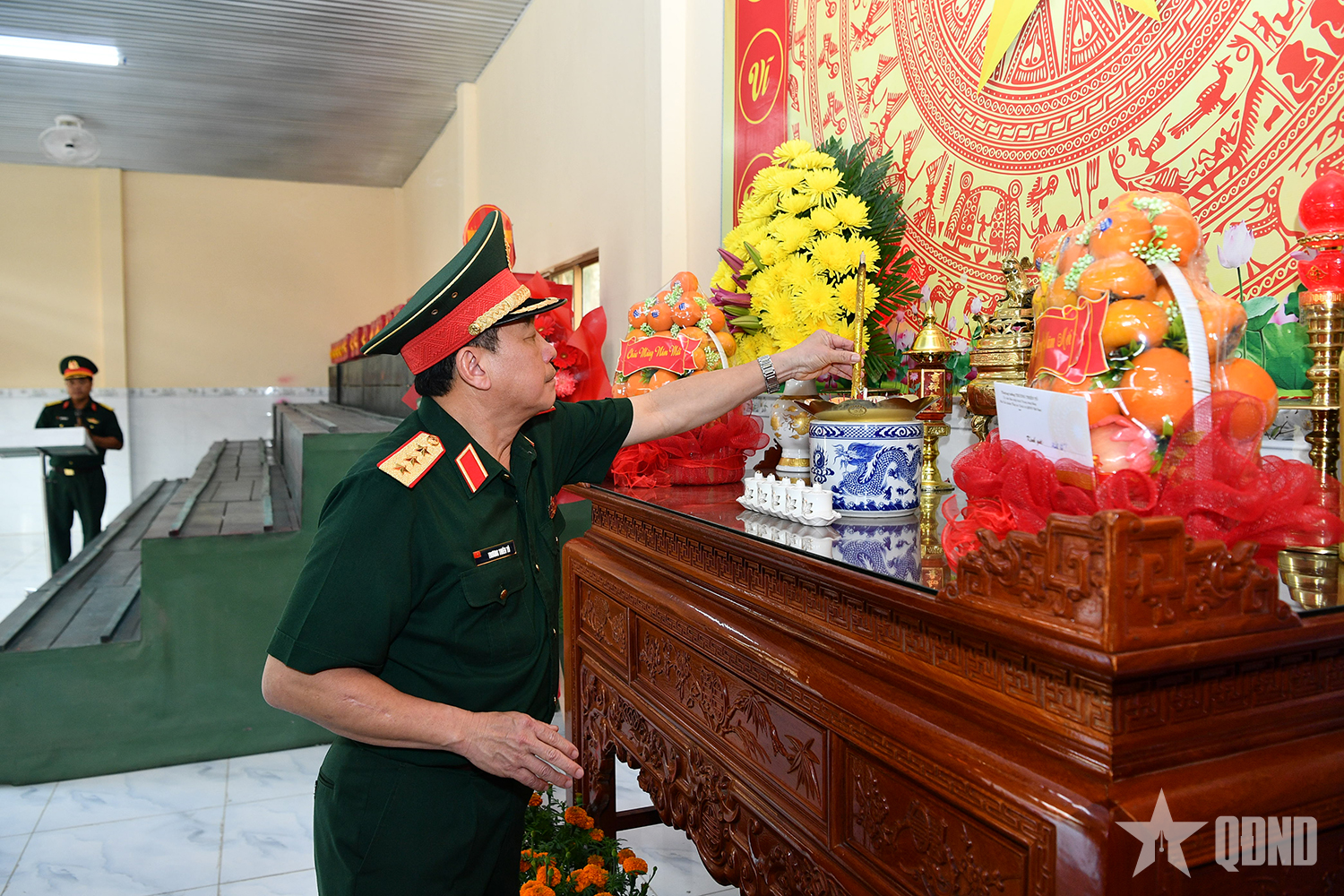 Thượng tướng Trương Thiên Tô và đoàn công tác Tổng cục Chính trị dâng hương các liệt sĩ.