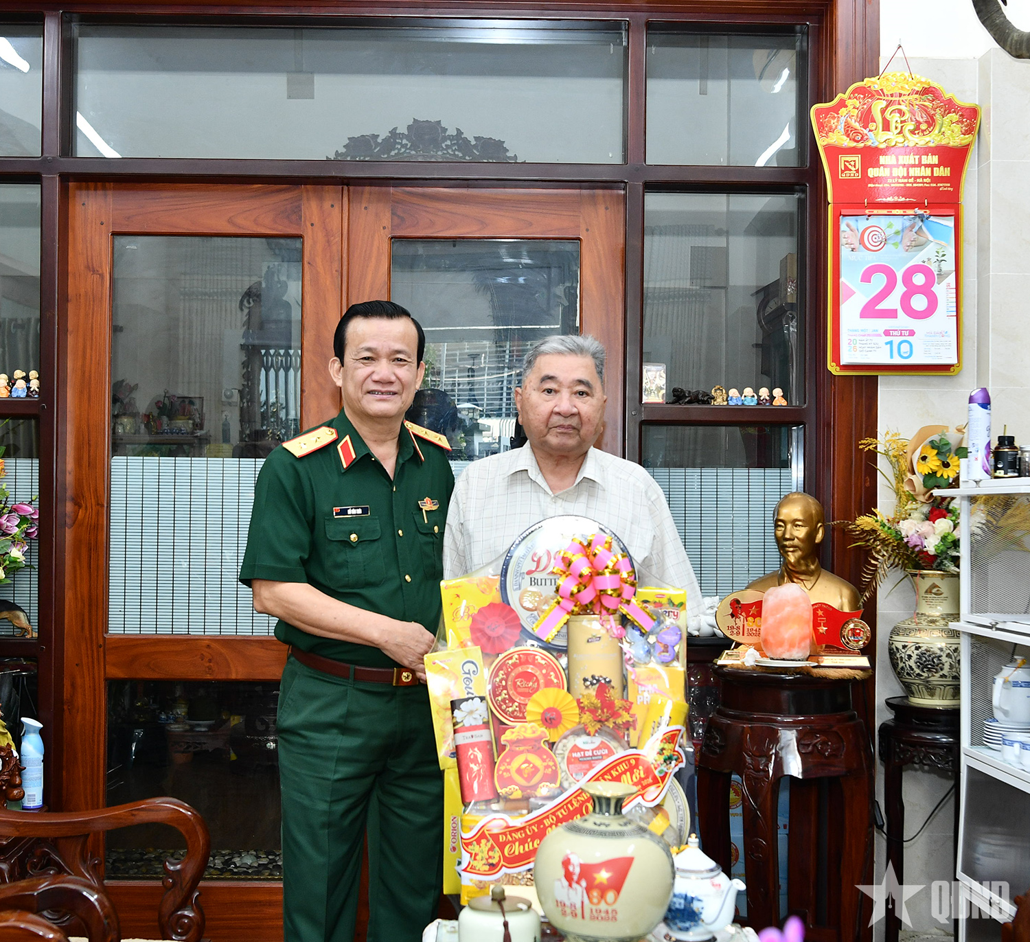 Đoàn công tác Tổng cục Chính trị đến thăm, tặng quà gia đình Thượng tướng Bùi Văn Huấn.