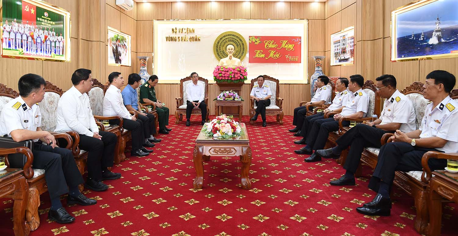 Đồng chí khẳng định, Vùng 5 Hải quân đã luôn nêu cao tinh thần trách nhiệm, đoàn kết, chủ động khắc phục khó khăn, hoàn thành tốt nhiệm vụ quản lý, bảo vệ vững chắc chủ quyền vùng biển đảo Tây Nam của Tổ quốc, góp phần giữ vững môi trường hòa bình, ổn định để phát triển đất nước.