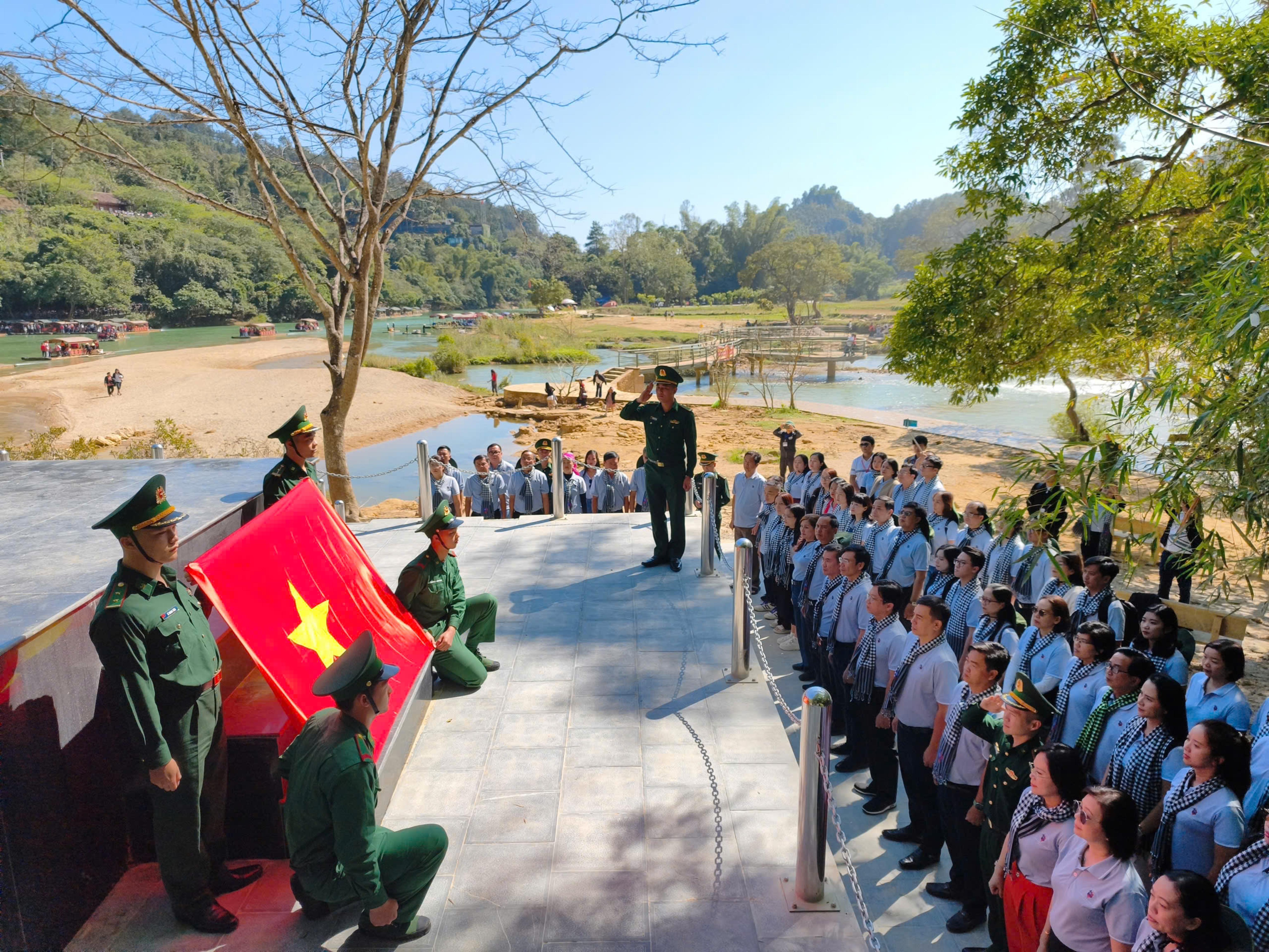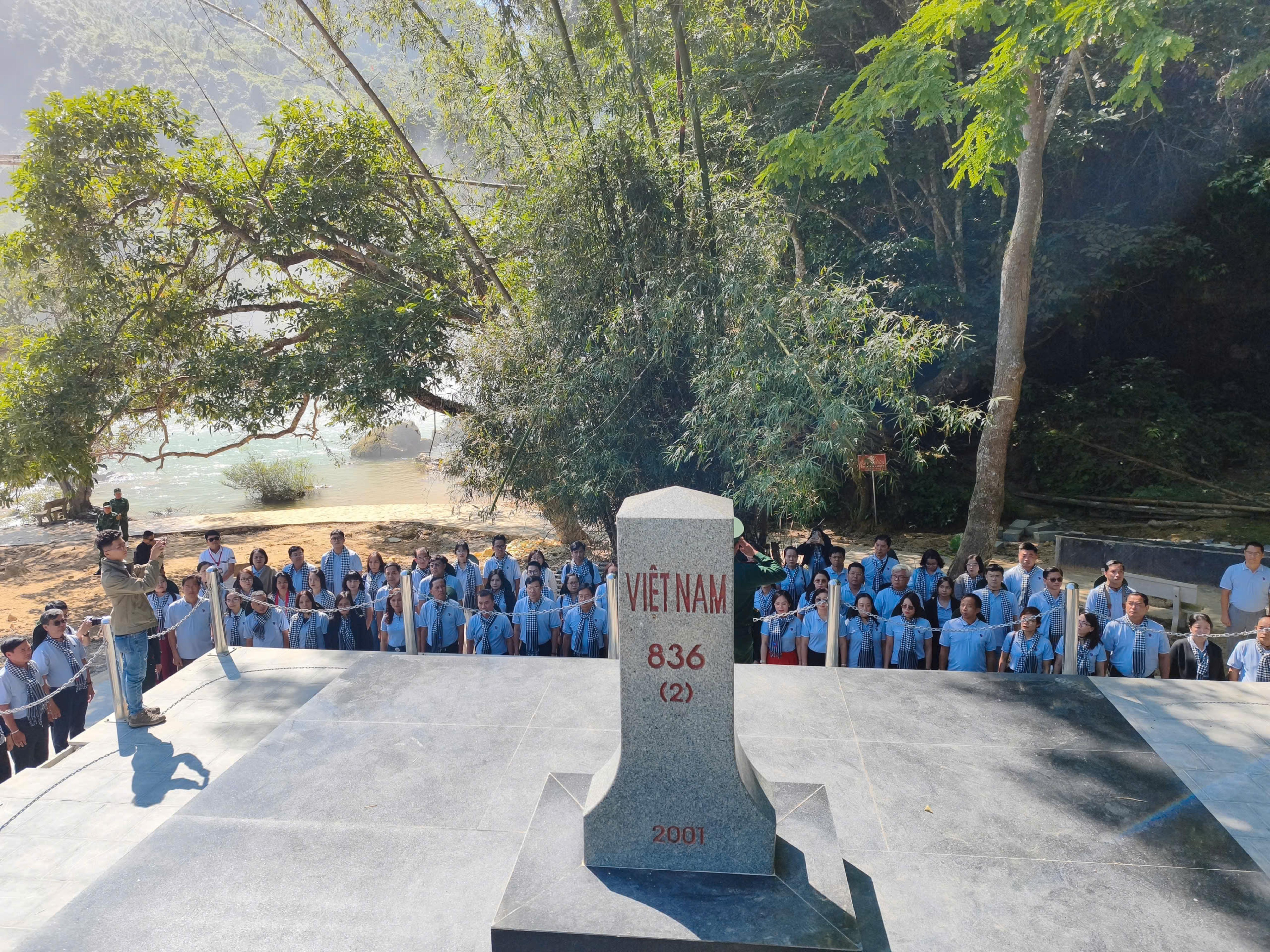 Đoàn cũng thực hiện nghi thức chào cờ tại Cột mốc 836 (biên giới Việt - Trung) trong niềm xúc động xen lẫn tự hào về tinh thần dân tộc, tình yêu quê hương đất nước.