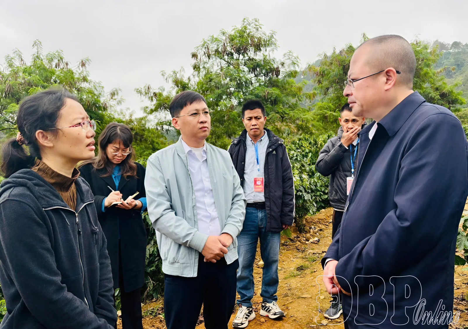 Đoàn công tác TP. Phổ Nhĩ và huyện Giang Thành khảo sát vùng trồng cà phê Mường Ảng.