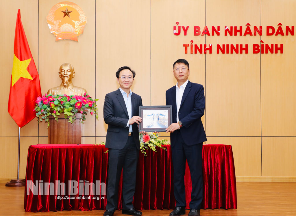 Nhân dịp này, lãnh đạo UBND tỉnh Ninh Bình đã tặng quà lưu niệm cho Đoàn công tác của UBND tỉnh Quảng Trị.