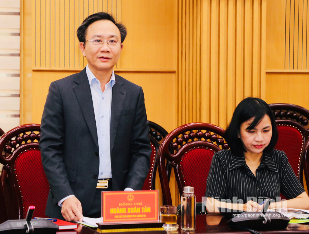 Đồng chí Hoàng Xuân Tân, Tỉnh ủy viên, Phó Chủ tịch UBND tỉnh Quảng Trị phát biểu tại buổi làm việc.