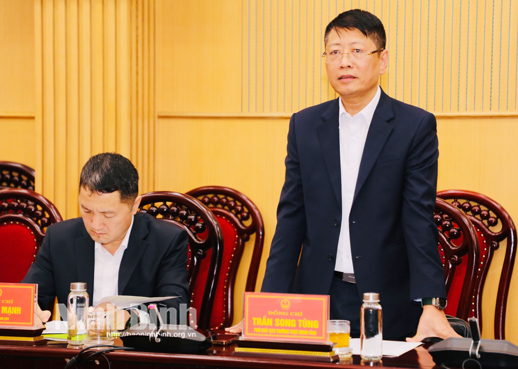 Đồng chí Trần Song Tùng, Ủy viên Ban Thường vụ Tỉnh ủy, Phó Chủ tịch Thường trực UBND tỉnh phát biểu tại buổi làm việc.