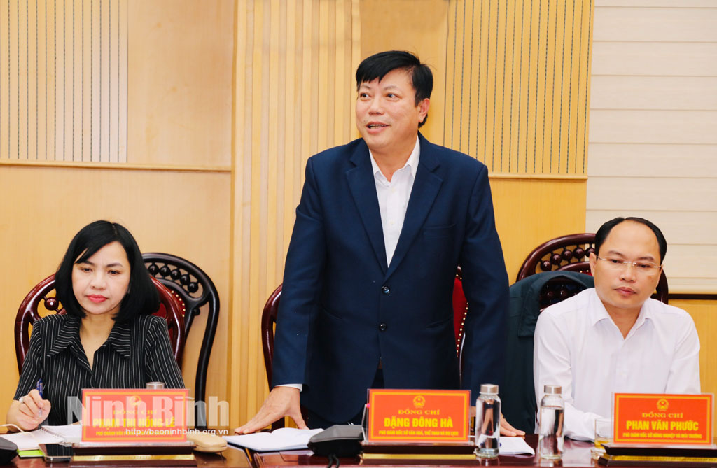 Lãnh đạo Sở Văn hóa và Thể thao tỉnh Ninh Bình phát biểu tại buổi làm việc.