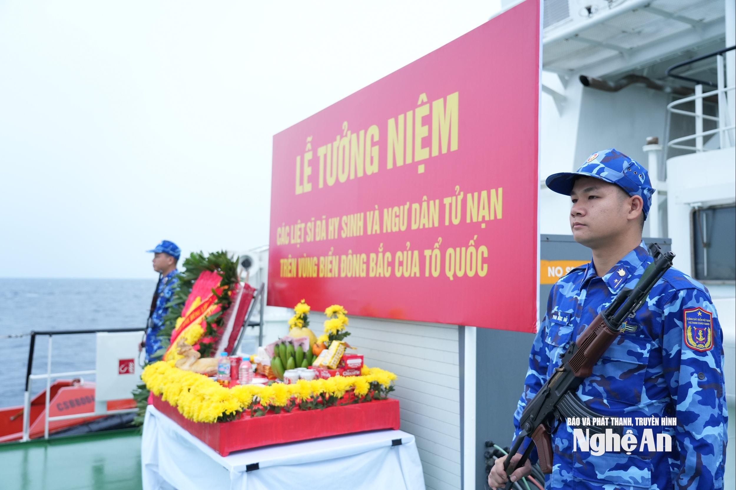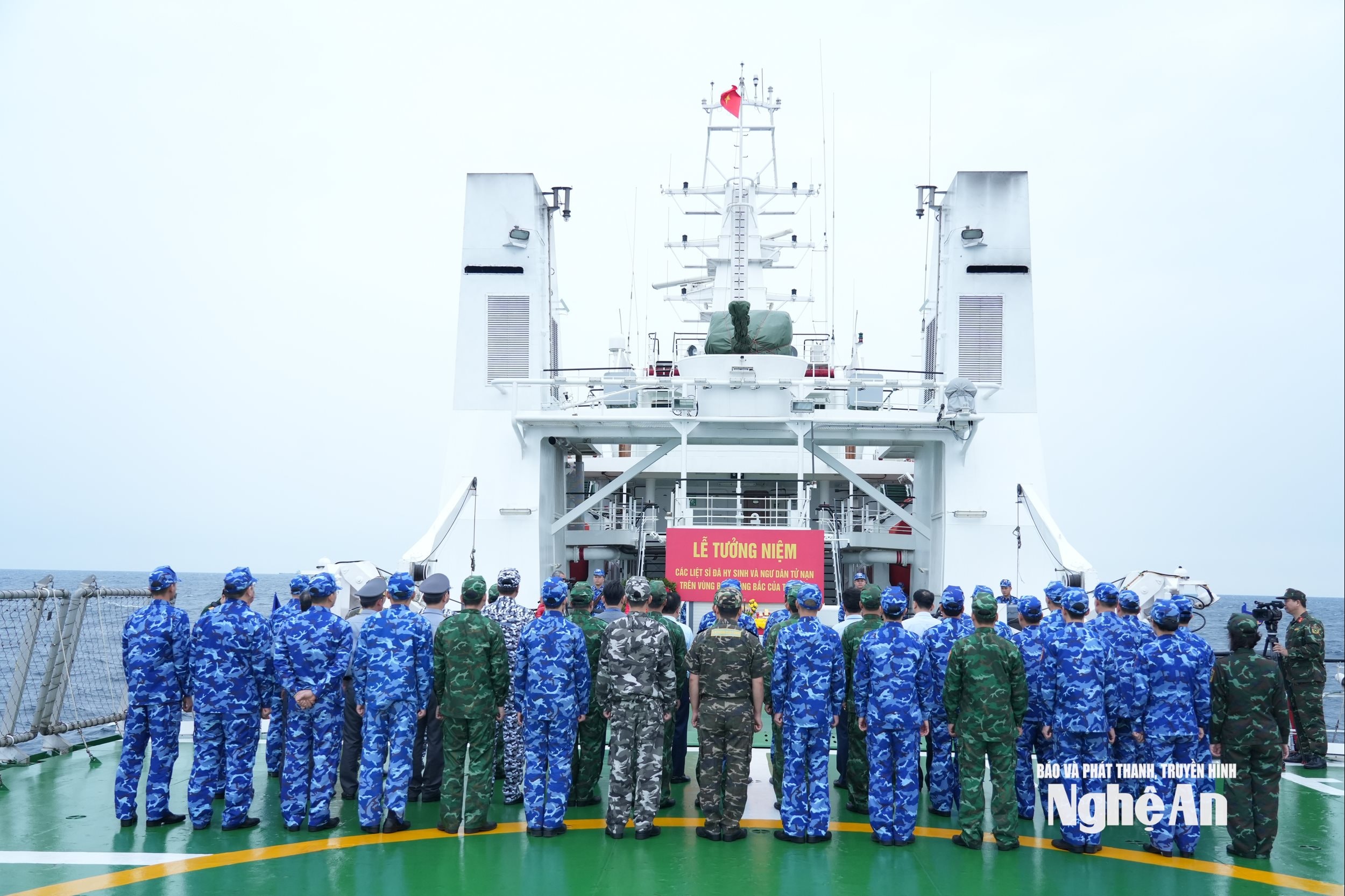 Lễ tưởng niệm được tổ chức trên tàu 8004, tàu kỳ hạm biên đội tàu tham gia tuần tra liên hợp lần thứ nhất năm 2026. Ảnh: Sơn Hiếu