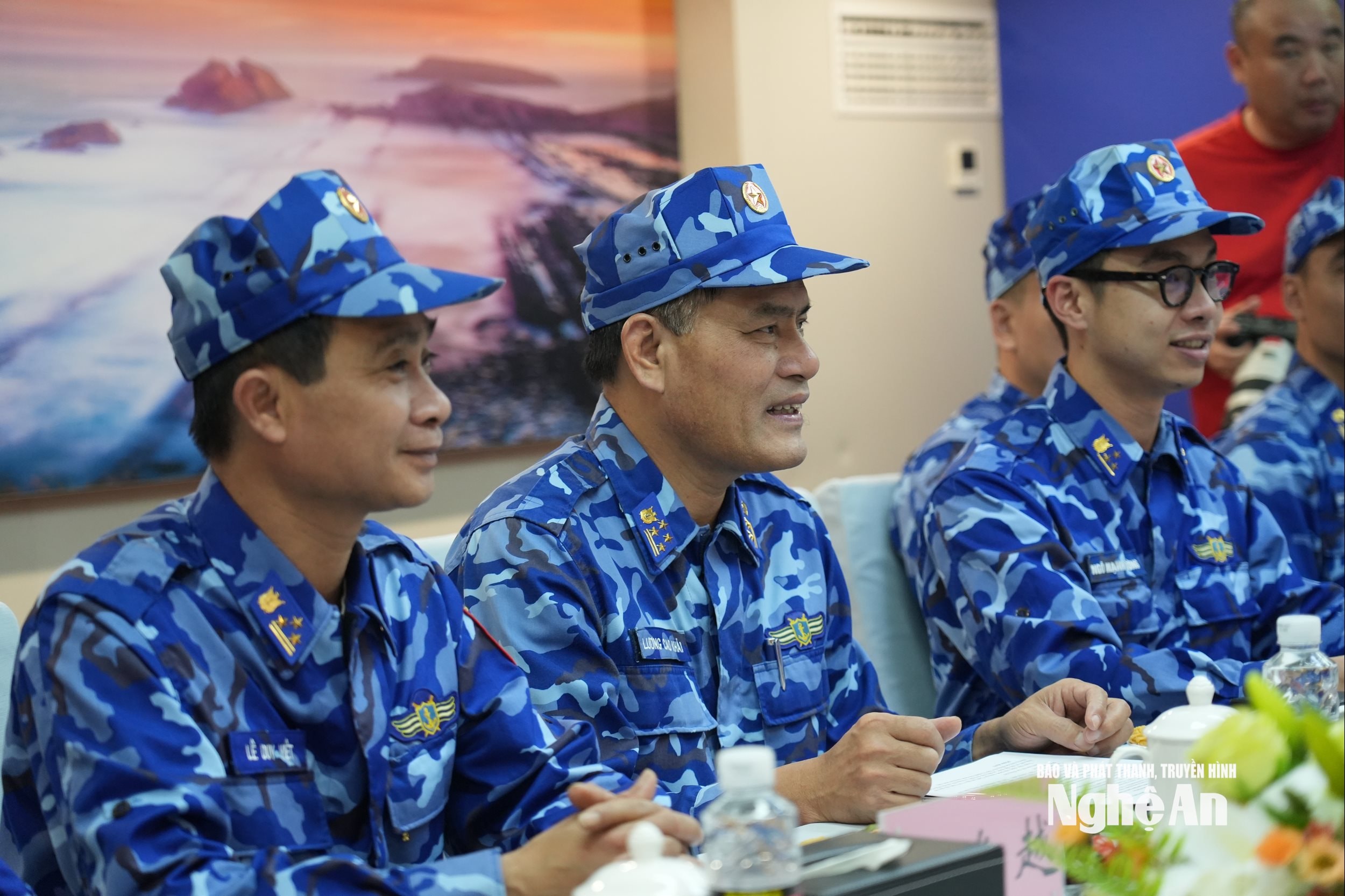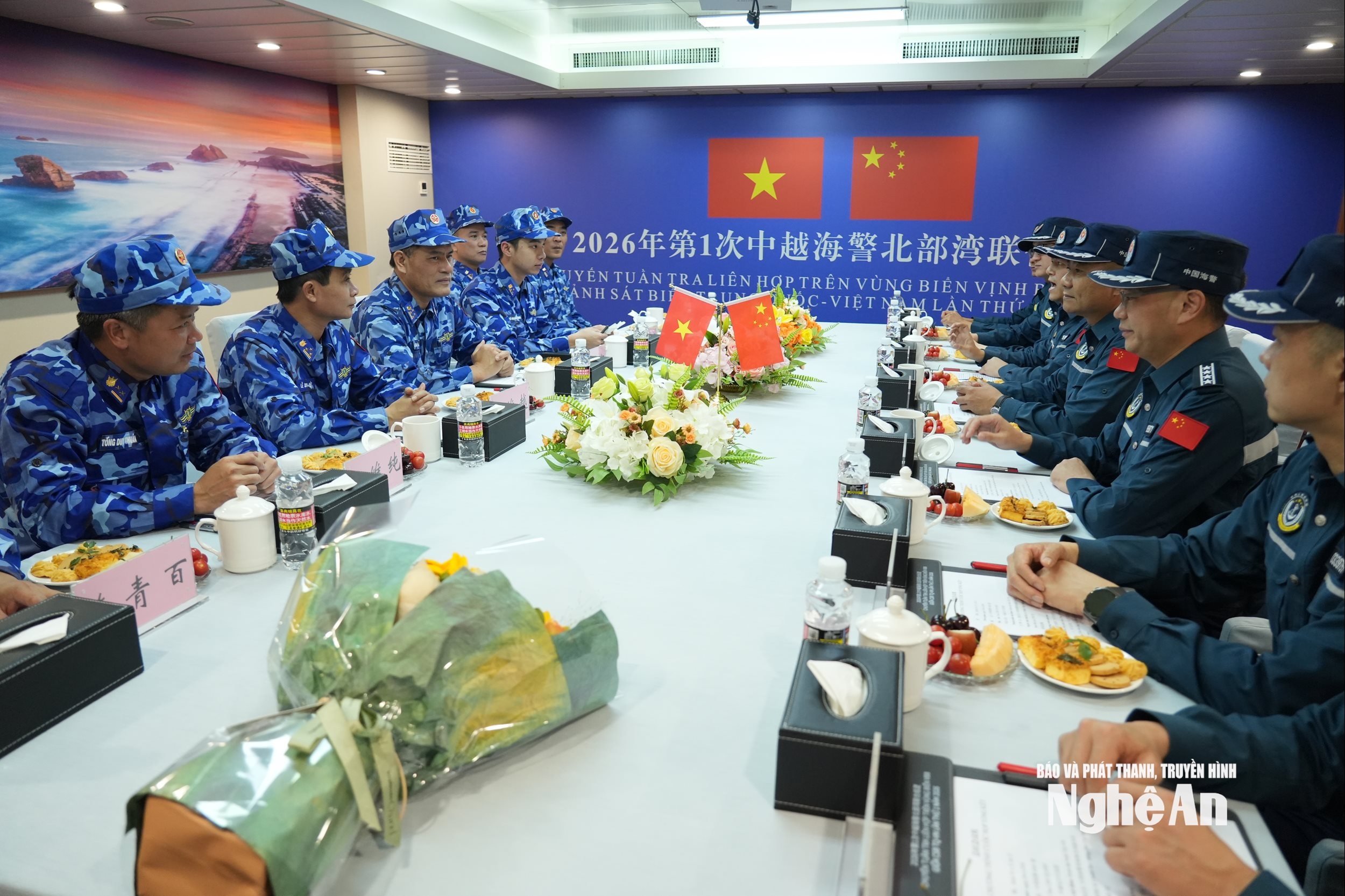 Đồng chí Đại tá Lương Cao Khải - Phó Tư lệnh, Tham mưu trưởng Vùng Cảnh sát biển 1 dẫn đầu đoàn công tác Cảnh sát biển Việt Nam. Đón và làm việc với đoàn, về Phía Cảnh sát biển Trung Quốc do Đại tá Chiêm Đông - Phân cục phó Phân cục Nam Hải.