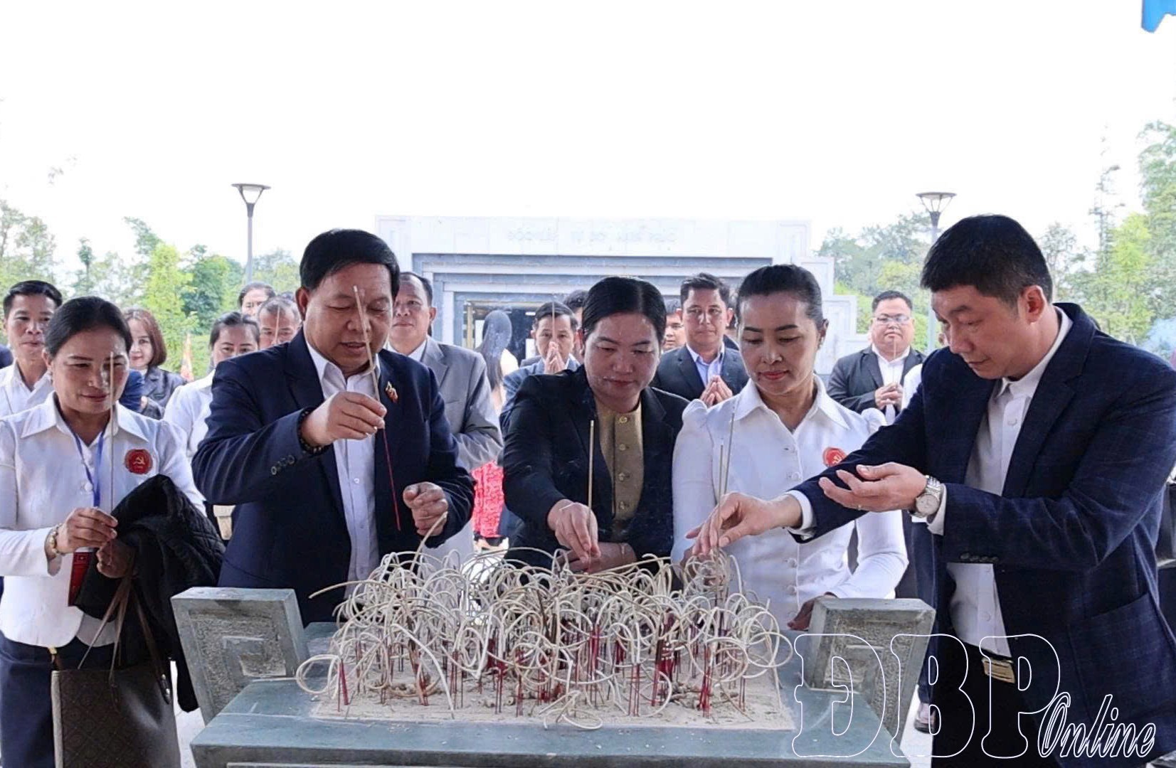 Sau buổi chào xã giao, Đoàn đại biểu Ban Tuyên huấn 3 tỉnh: Phoong Sa Lỳ, U Đôm Xay và Luông Pha Băng, đã đến dâng hương tri ân các anh hùng liệt sĩ tại Đền thờ liệt sĩ tại Chiến trường Điện Biên Phủ và Nghĩa trang Liệt sĩ Tông Khao.