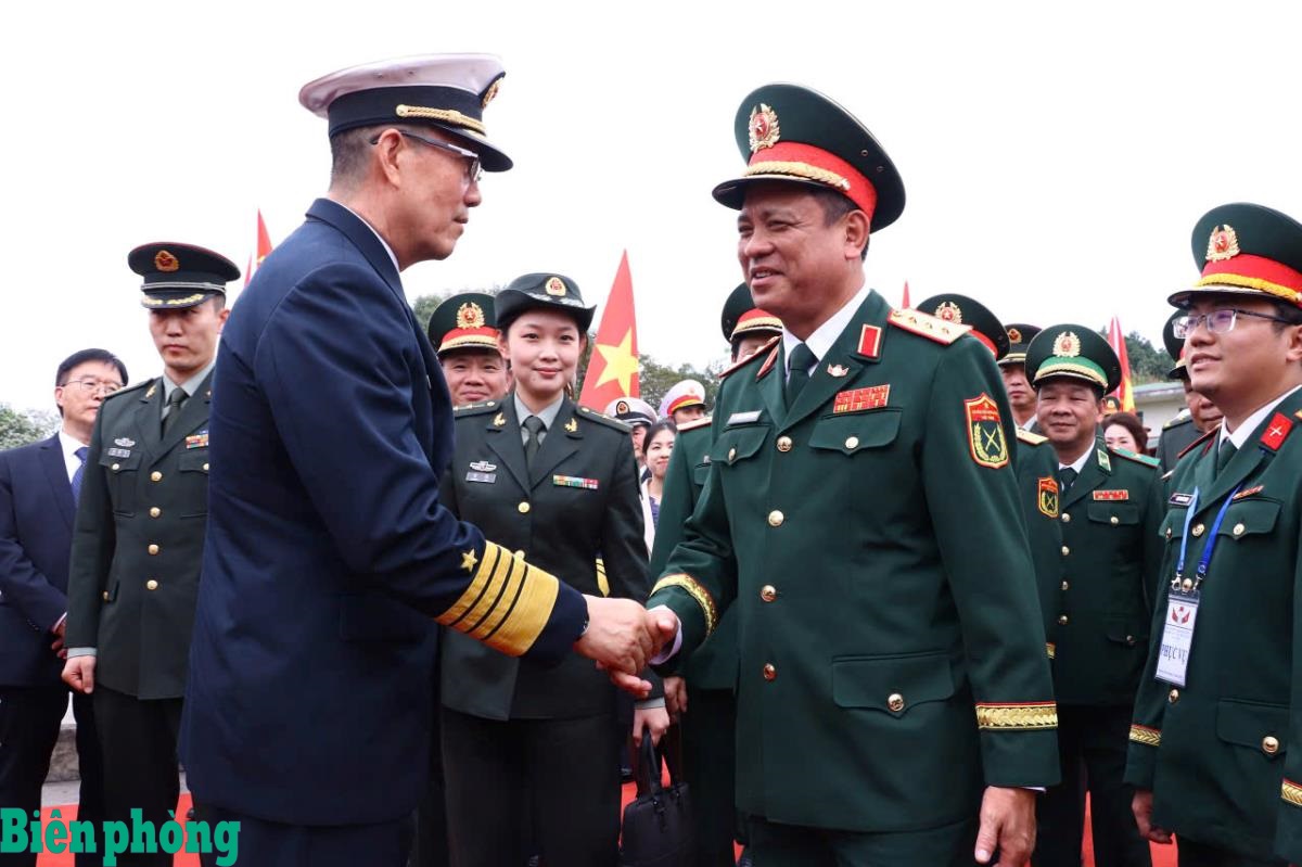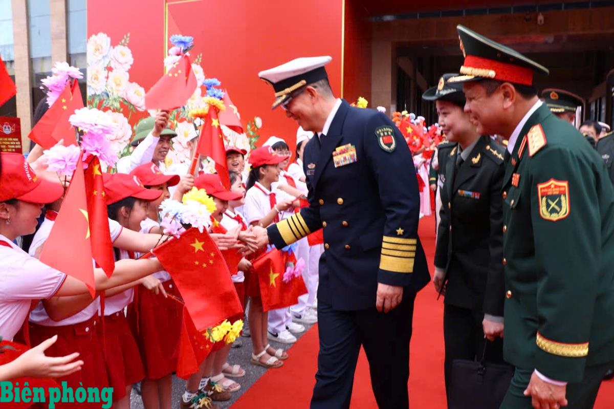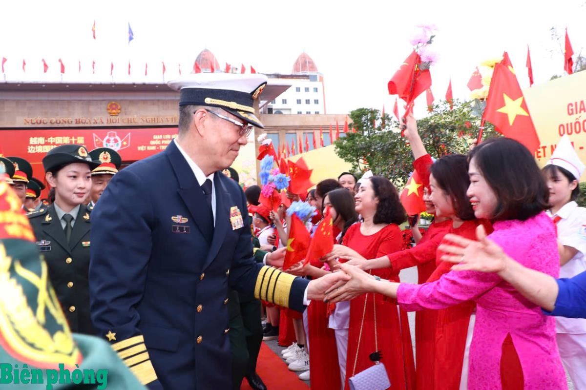 Trung tướng Vũ Trung Kiên, Ủy viên Ban Chấp hành Trung ương Đảng, Tư lệnh Bộ đội Biên phòng; đại diện lãnh đạo cơ quan chức năng Bộ Quốc phòng Việt Nam; đại diện lãnh đạo tỉnh Quảng Ninh và đông đảo bà con nhân dân tham gia tiễn đoàn đại biểu cấp cao Bộ Quốc phòng Trung Quốc.