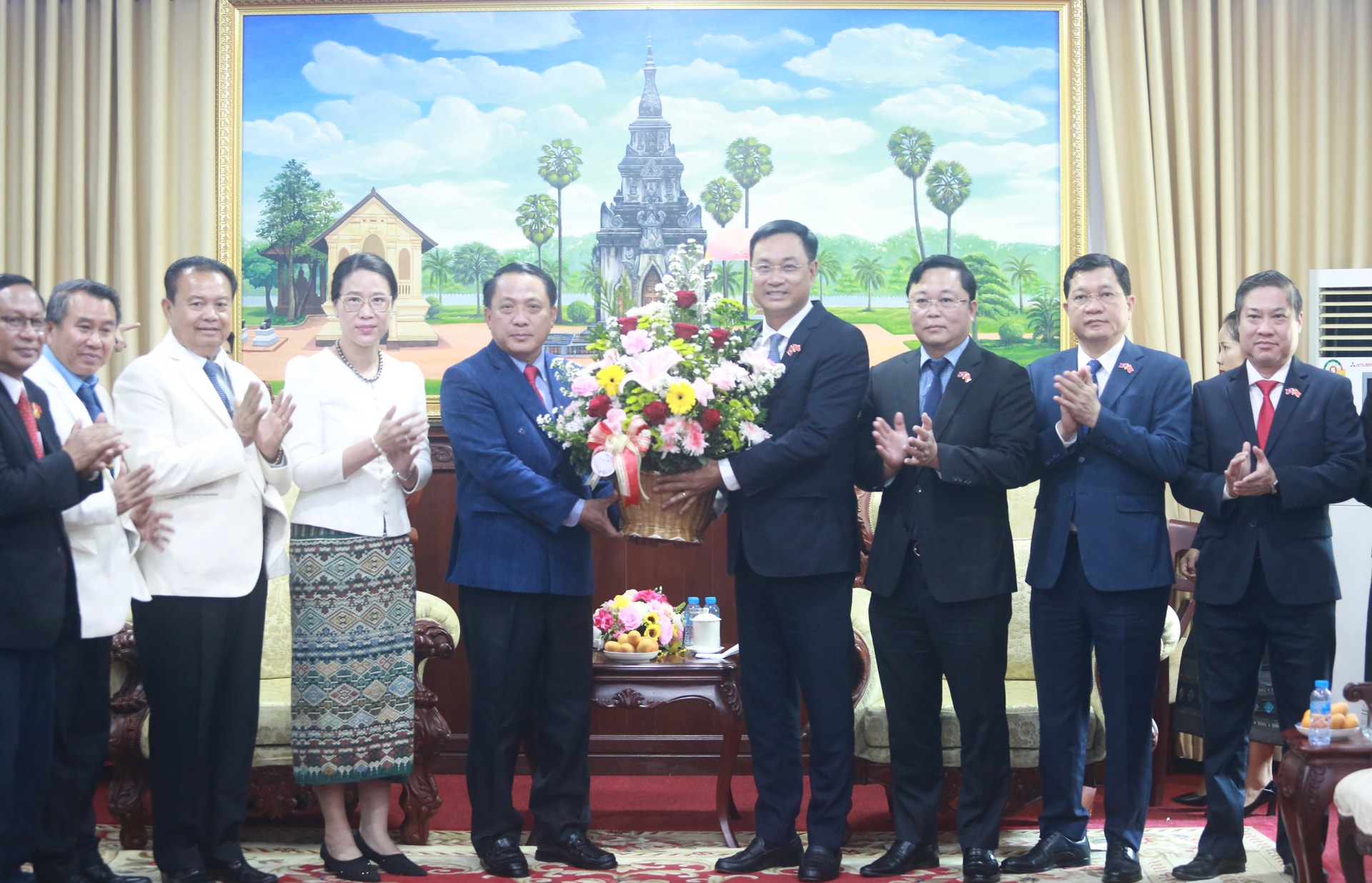 Tiếp đoàn có Ủy viên Trung ương Đảng Nhân dân Cách mạng Lào, Bí thư Tỉnh ủy Savannakhet Bounchom Ubonpaseuth và lãnh đạo tỉnh Savannakhet.