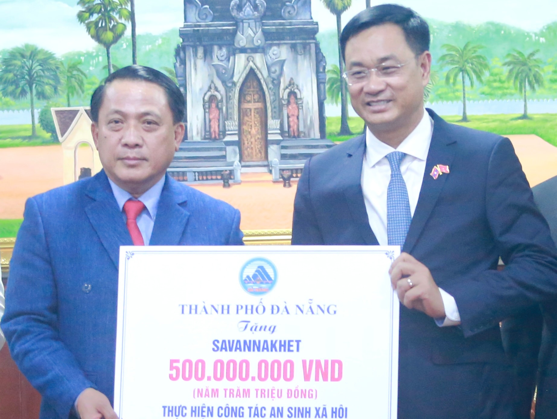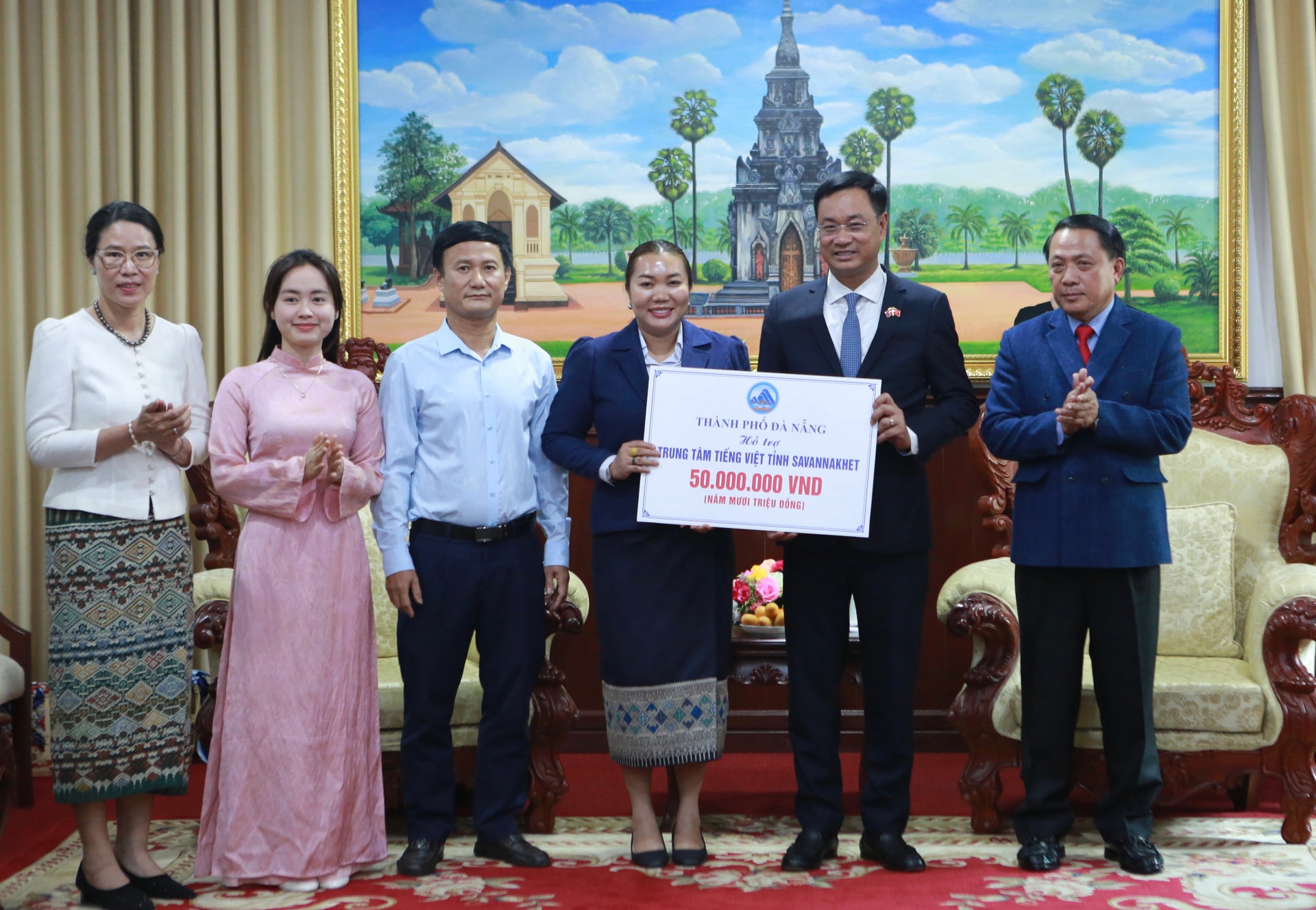Dịp này, thành phố Đà Nẵng trao tặng tỉnh Savannakhet 500 triệu đồng; hỗ trợ Hội người Việt Nam tại Savannakhet 200 triệu đồng và tặng Trung tâm tiếng Việt tại địa phương 50 triệu đồng.