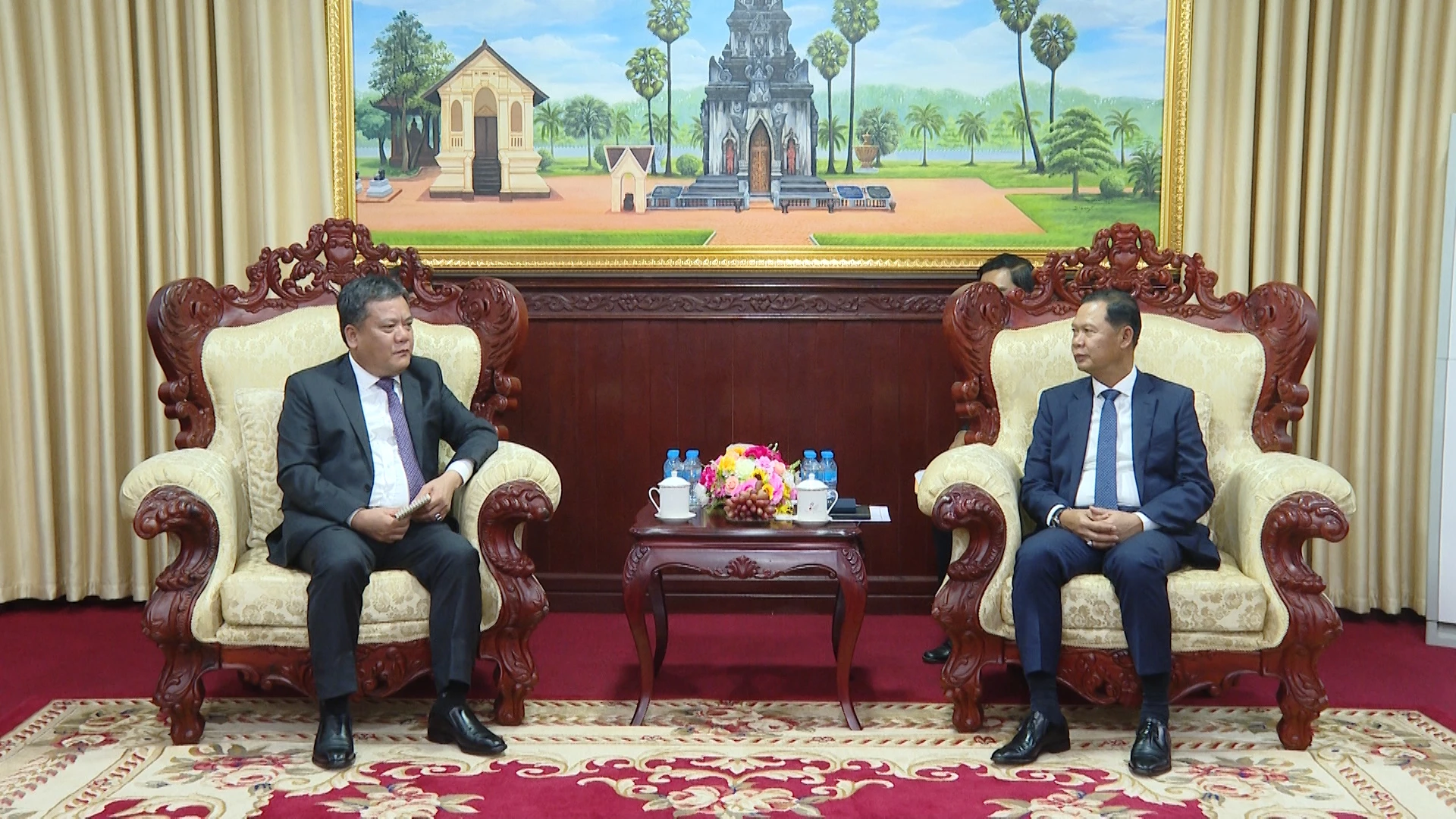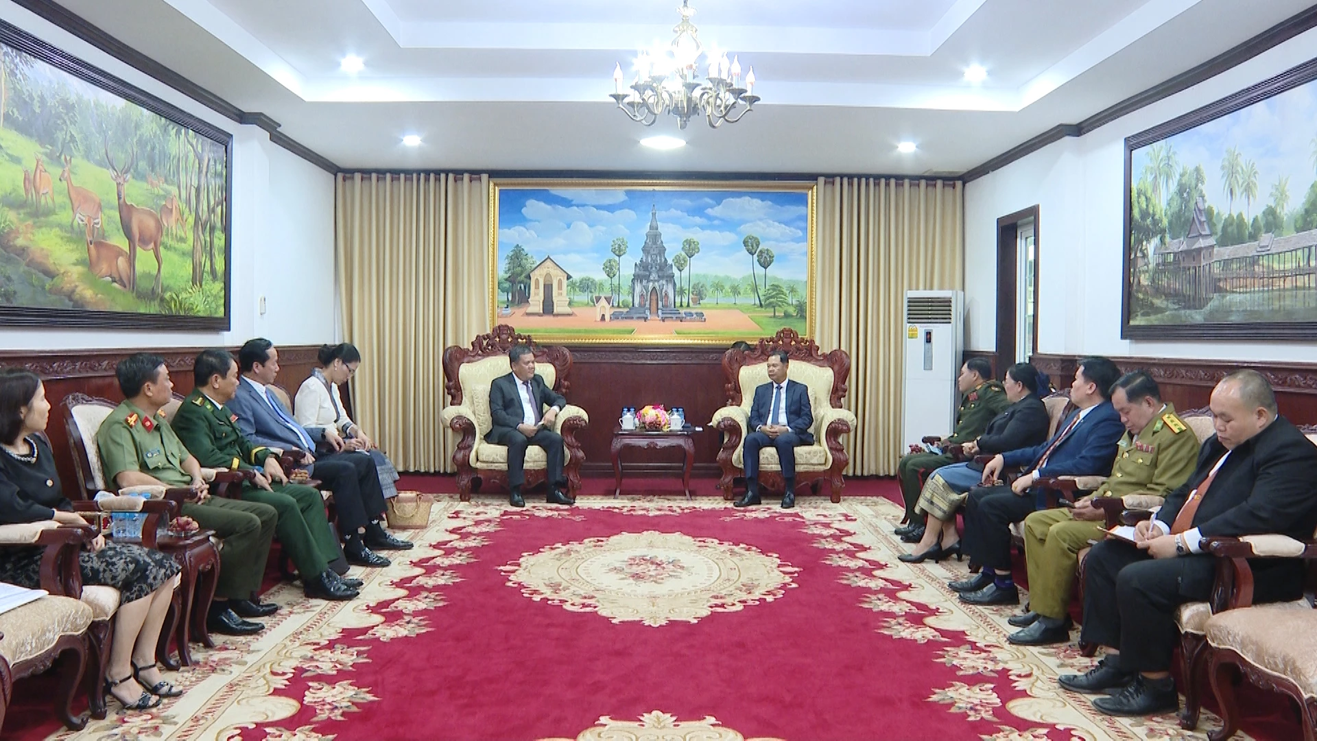 Đoàn đại biểu cấp cao tỉnh Quảng Trị chào xã giao lãnh đạo tỉnh Savannakhet - Ảnh: Đ.A