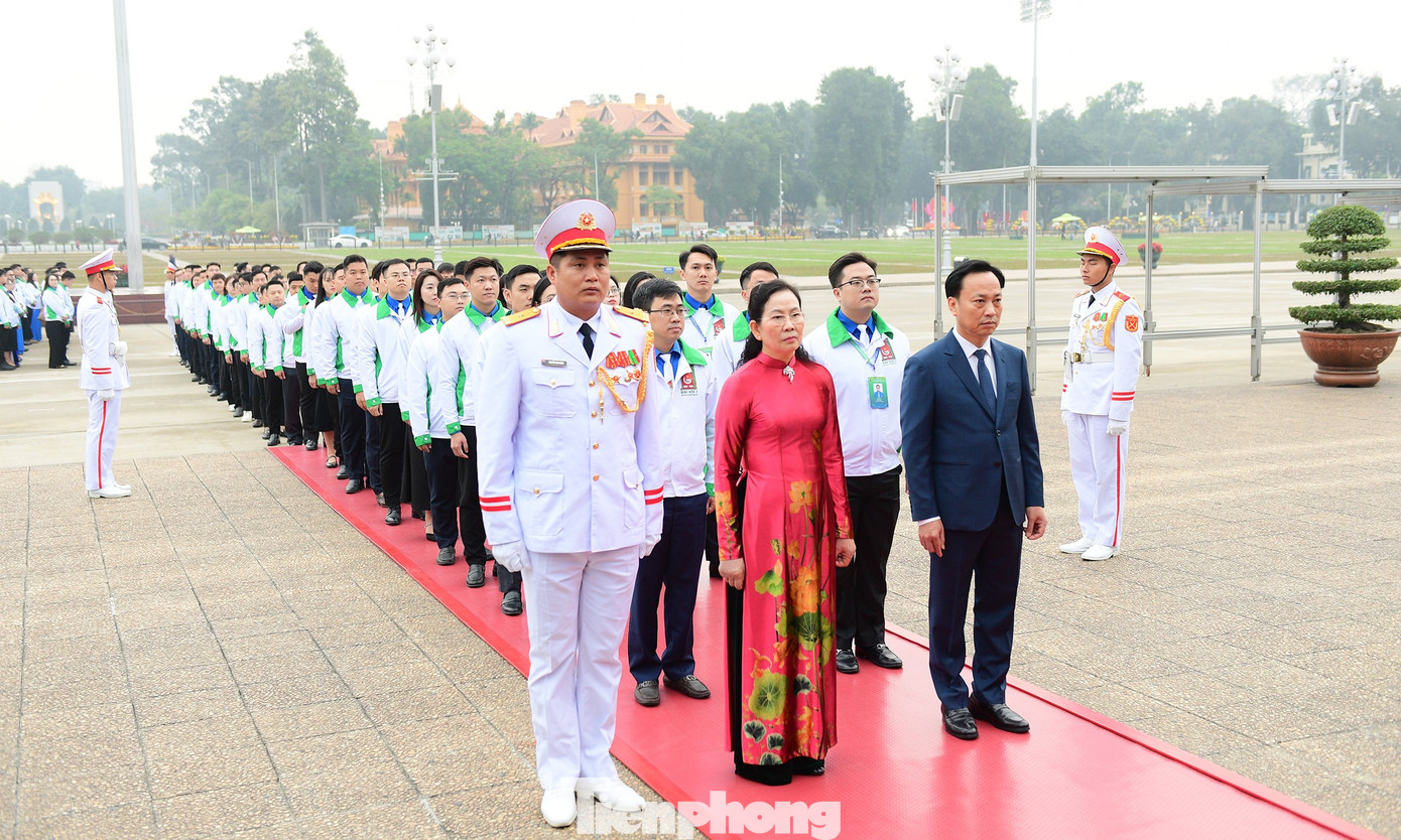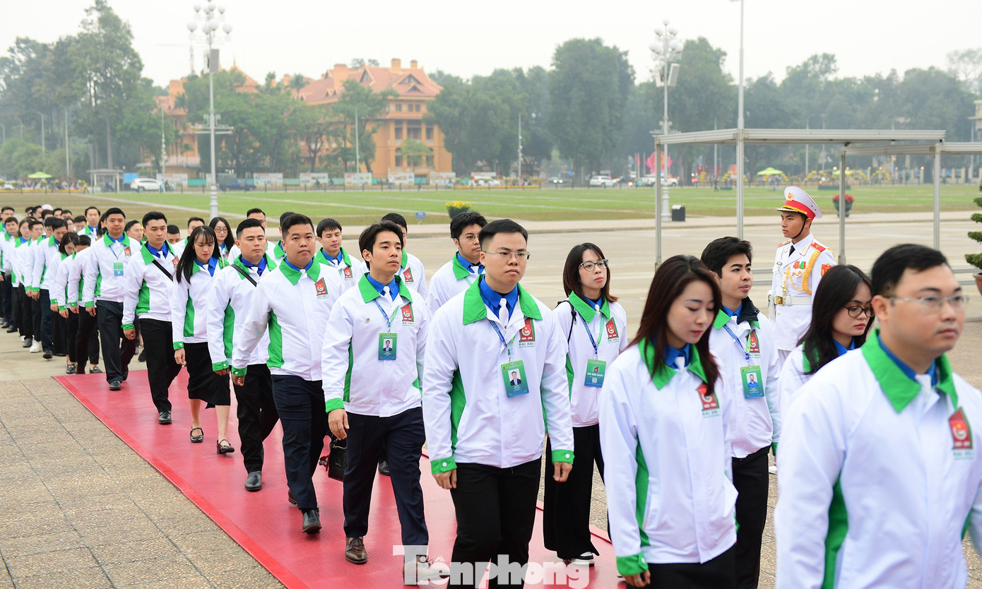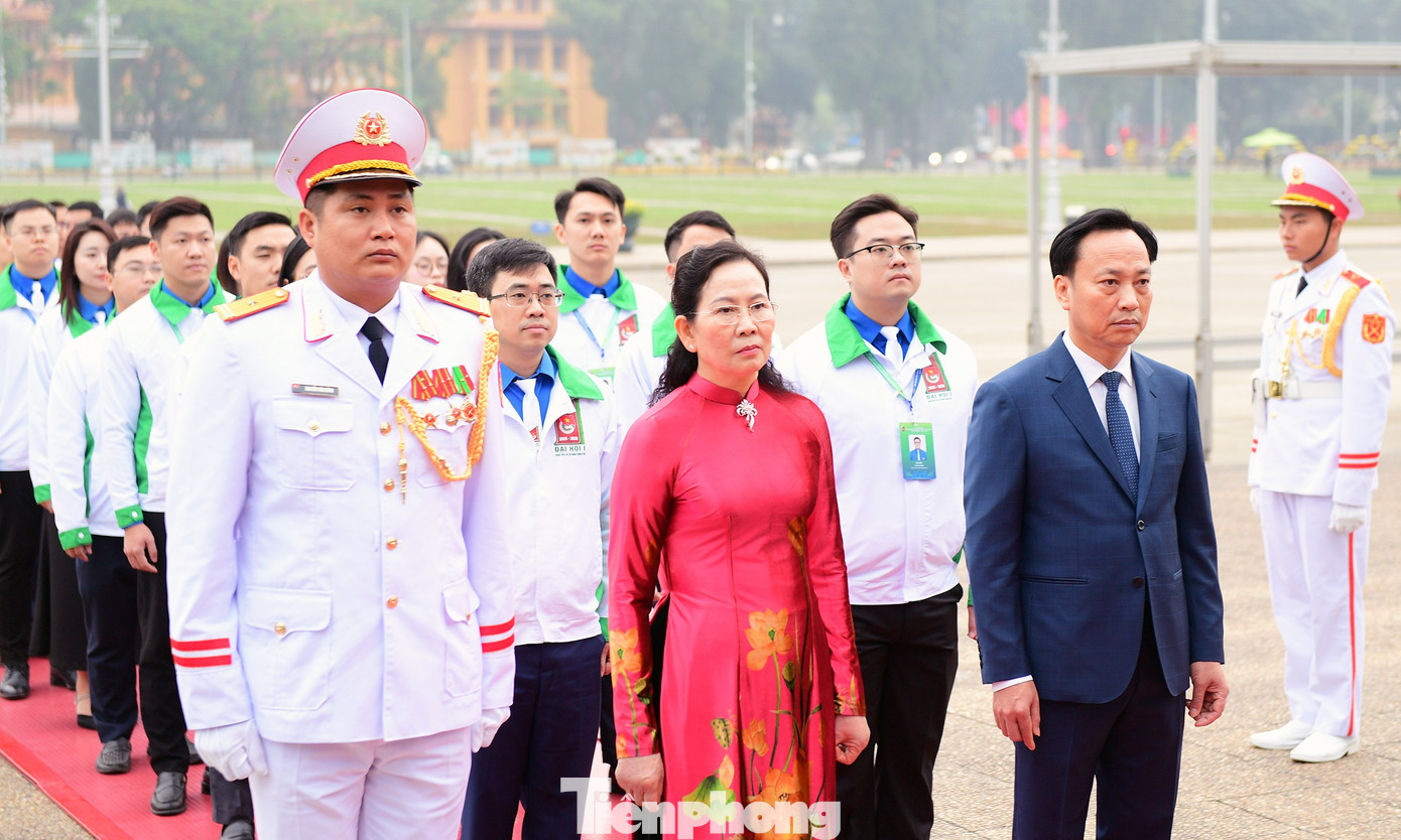 Đoàn đại biểu Đại hội Đoàn Thanh niên Chính phủ dâng vòng hoa và vào Lăng viếng Chủ tịch Hồ Chí Minh.