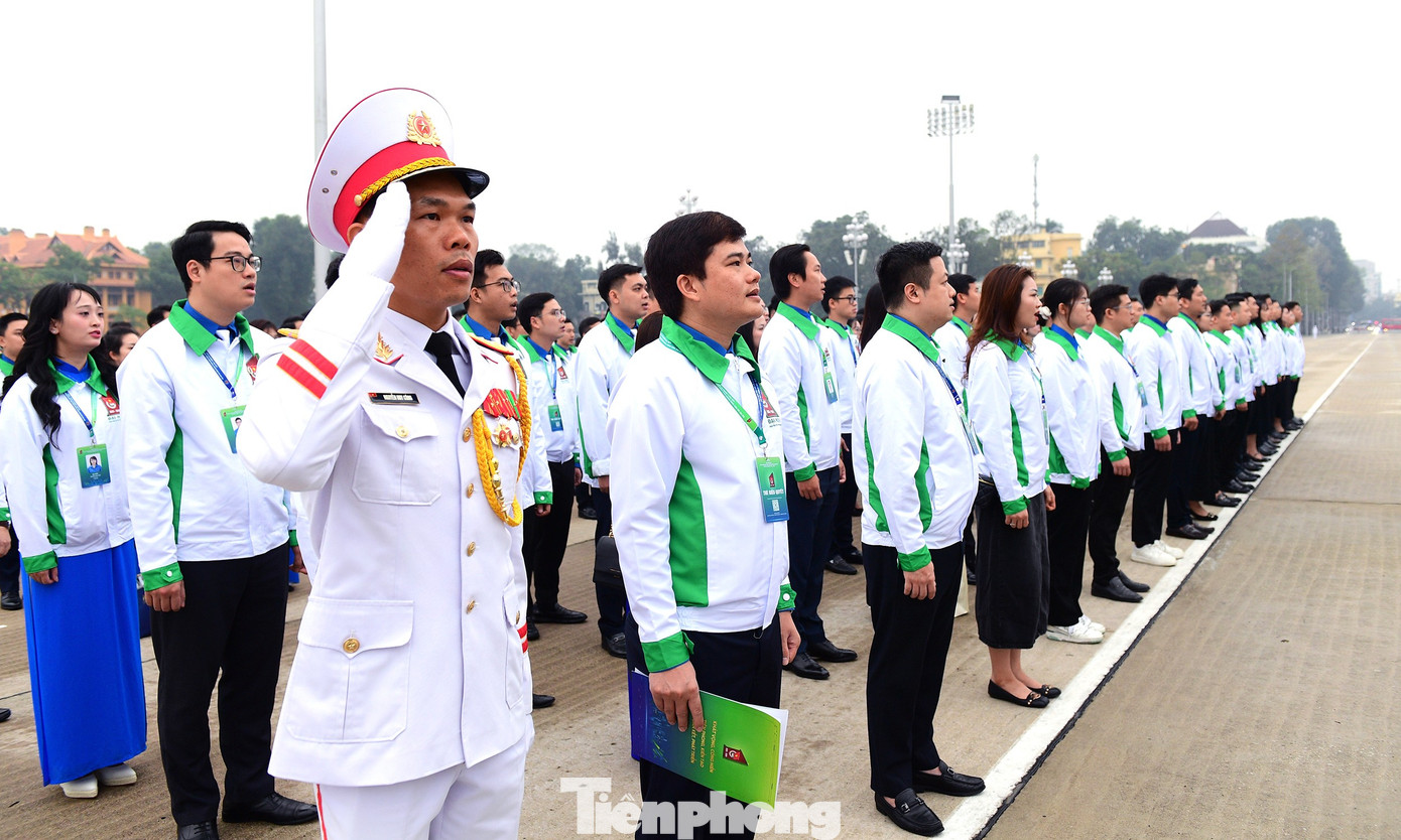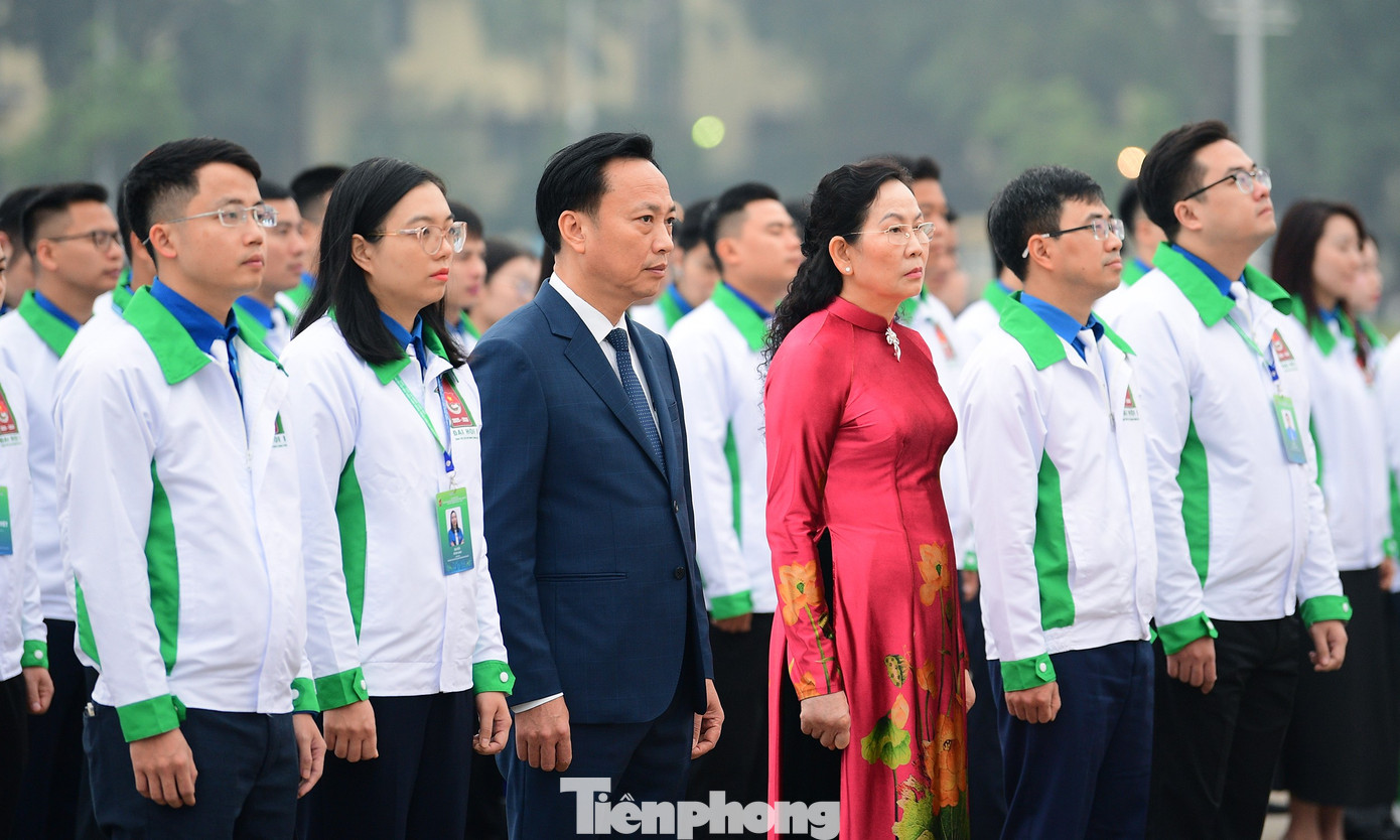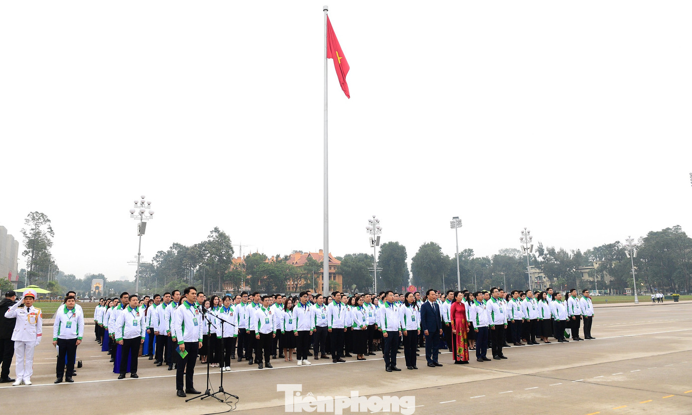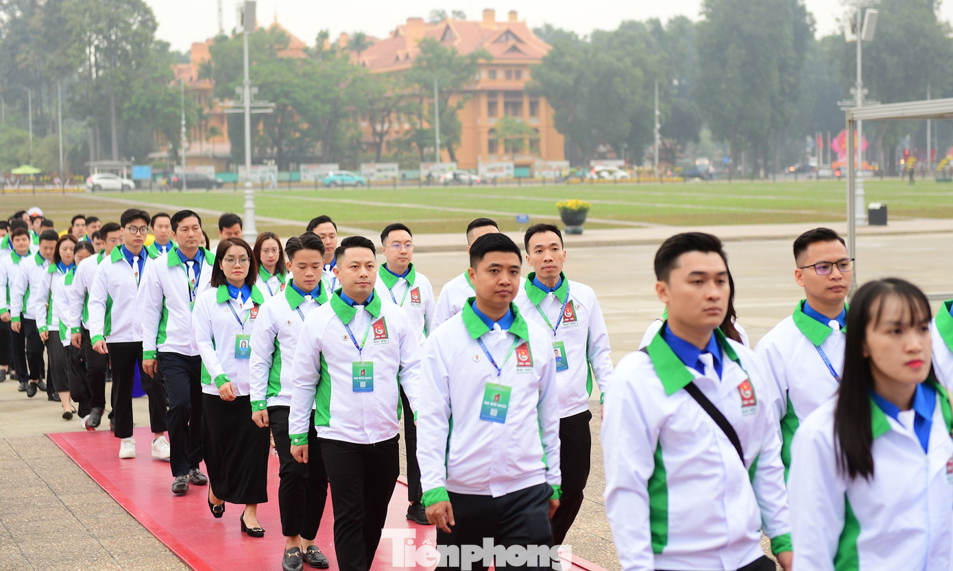 Đoàn đại biểu Đại hội Đoàn Thanh niên Chính phủ dâng vòng hoa và vào Lăng viếng Chủ tịch Hồ Chí Minh.