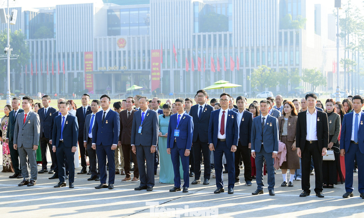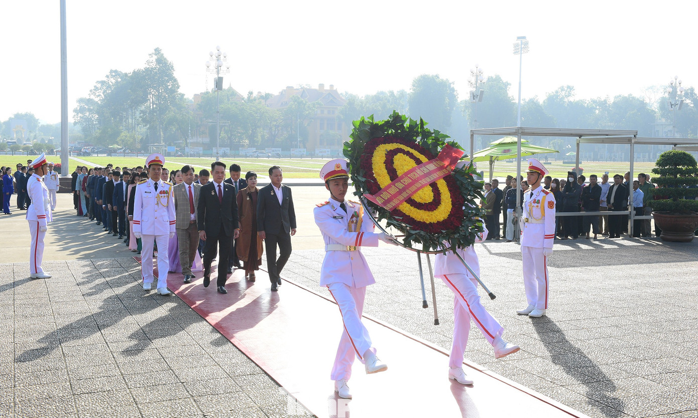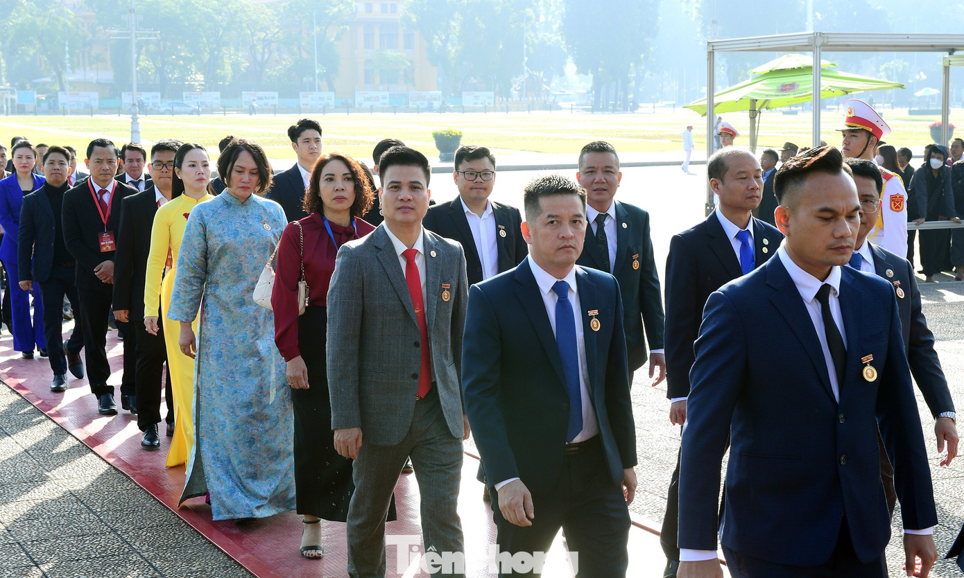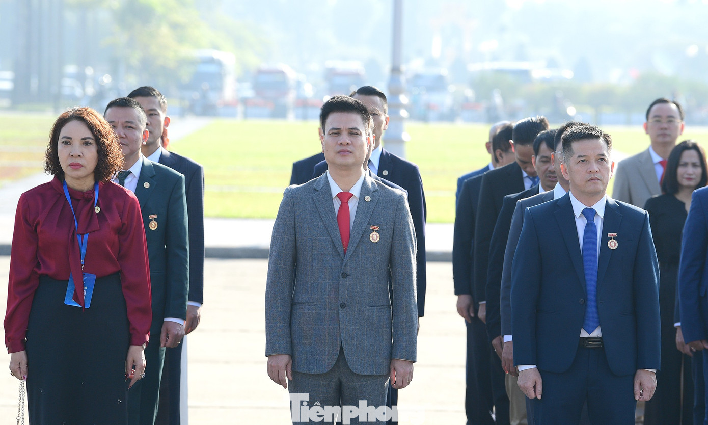 Đoàn đại biểu Đại hội đặt vòng hoa và vào Lăng viếng Chủ tịch Hồ Chí Minh. Ảnh: Xuân Tùng